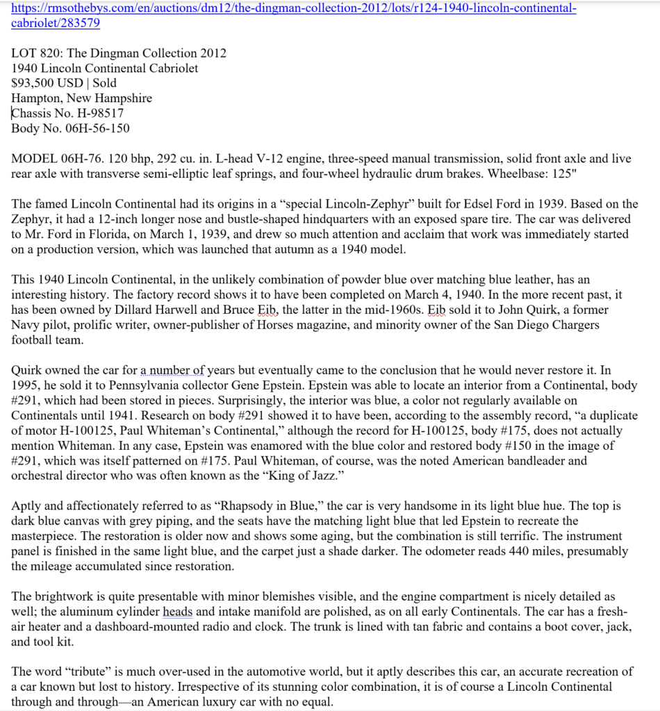 Photos accompanying the sale listing RM Sotheby’s Dingman Collection 2012: