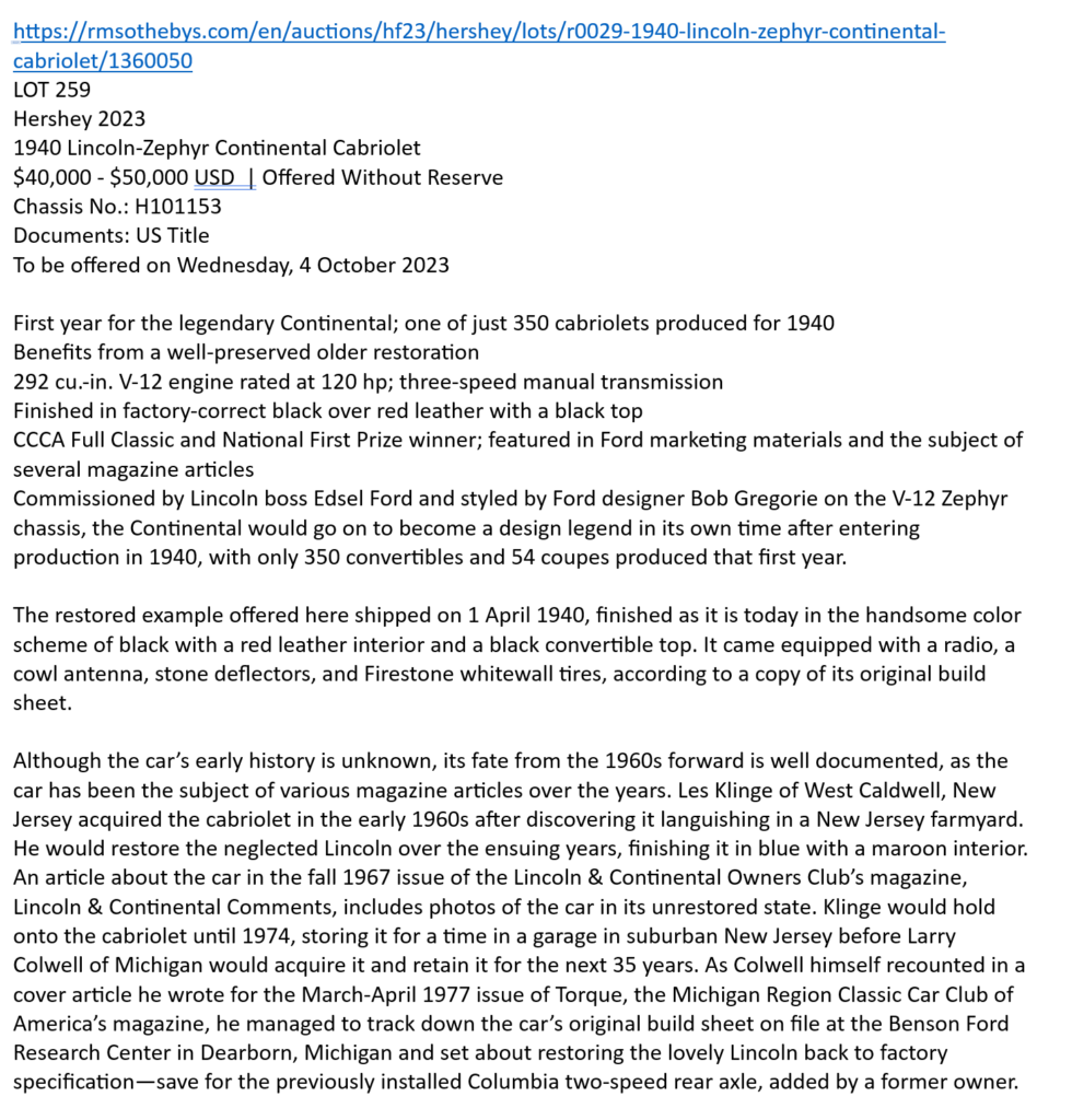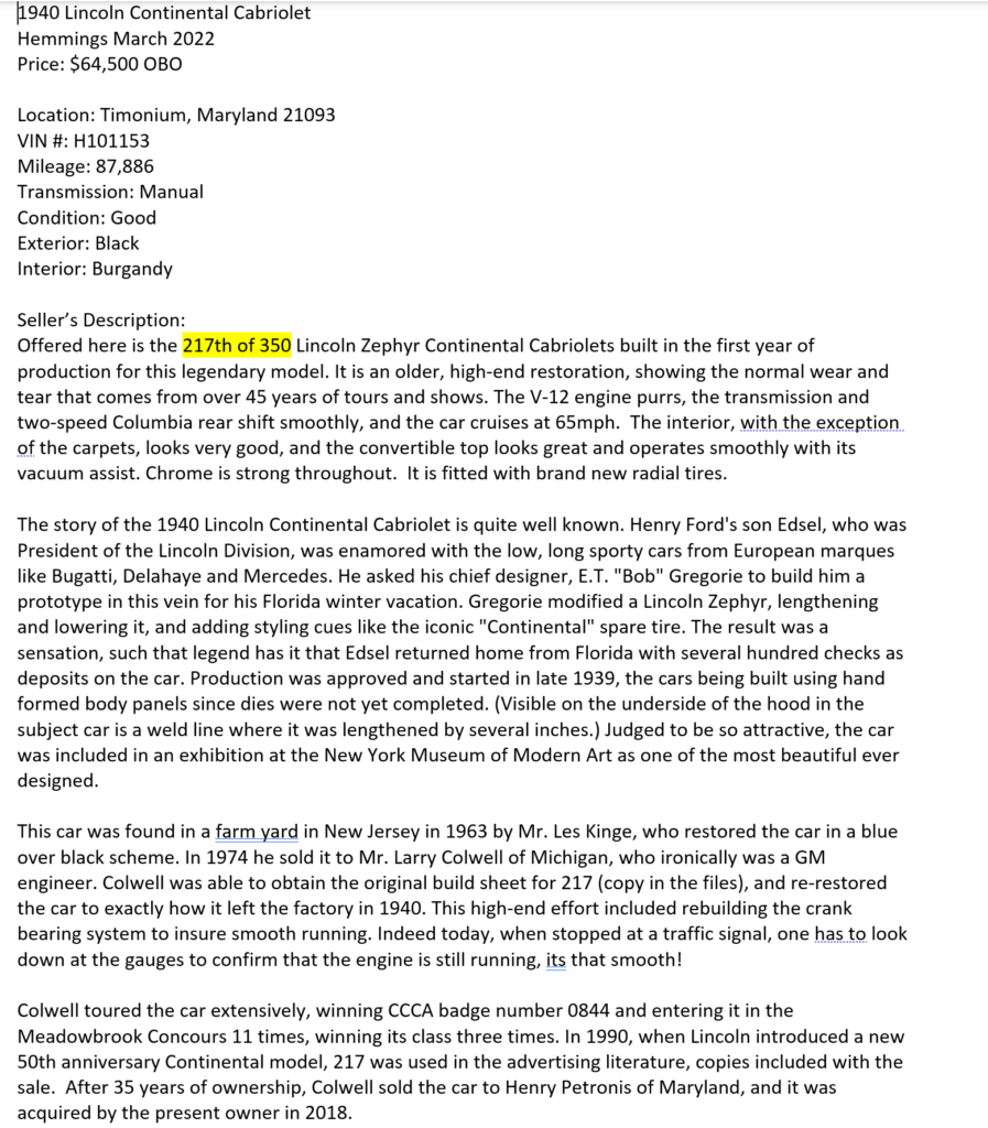 Other photos accompanying the sale listing on Hemmings in 2022: