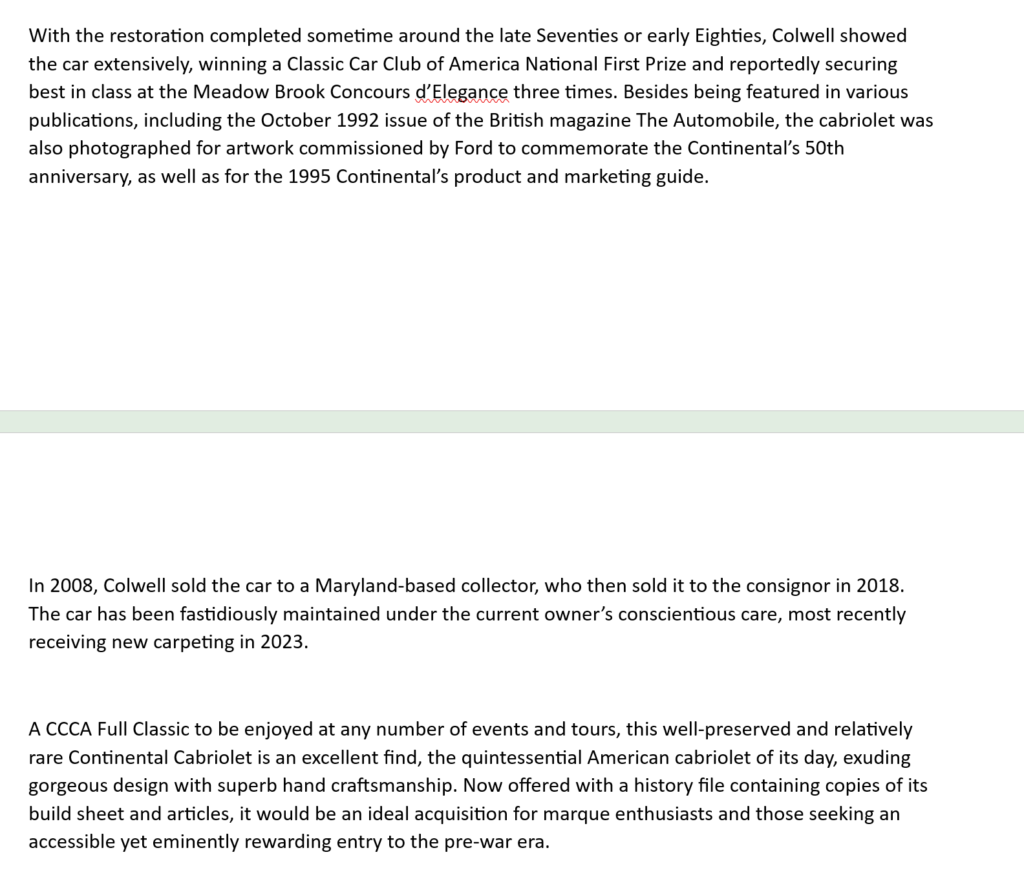 Engine-bay photos accompanying the sale listing by Sotheby’s Auction 2023: