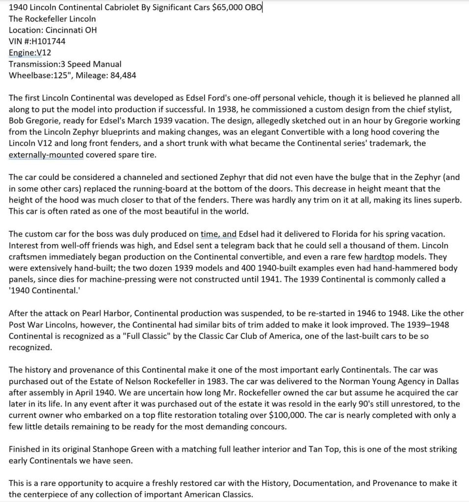 Photos accompanying the sales listing by Significant Cars September 2017: