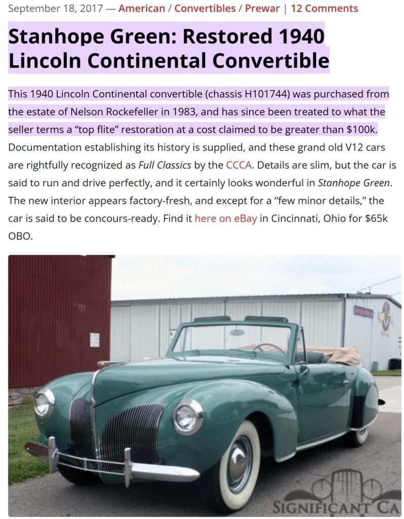 Recap of ales listing by Significant Cars September 2017 on BarnFinds.com: