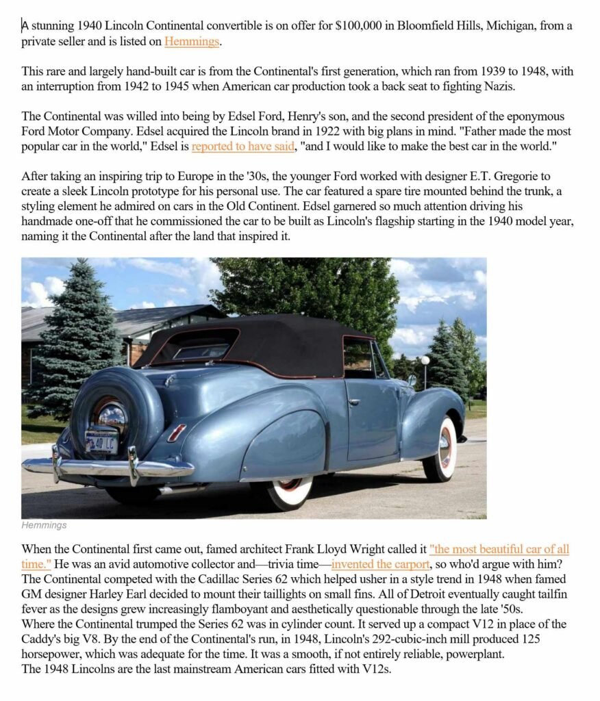 KV Dahl III describing the 1940 Lincoln-Zephyr Continental Cabriolet: