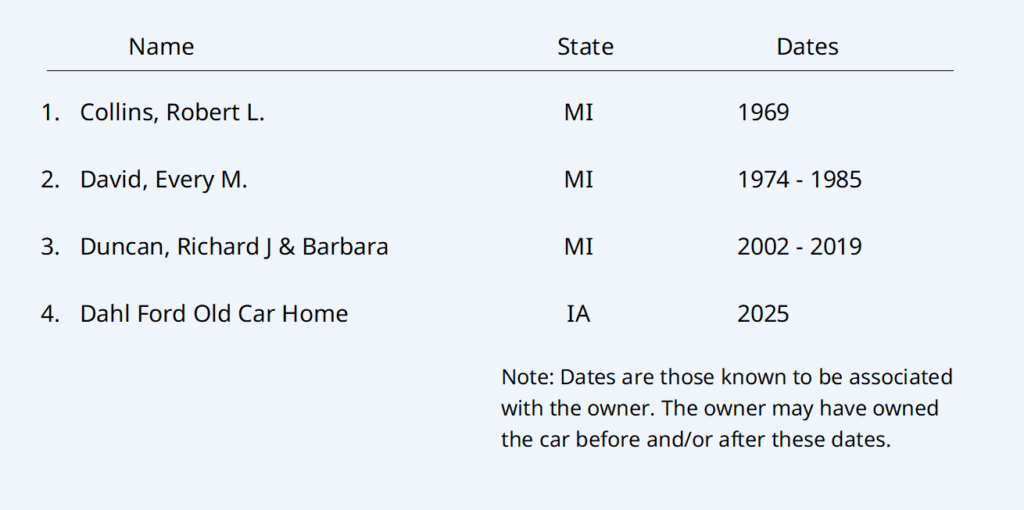 The car at the Dahl Ford Old Car Home, Davenport, IA in 2025