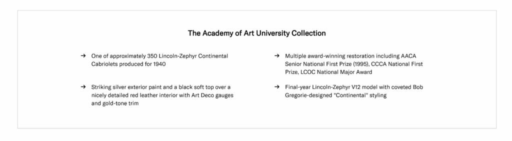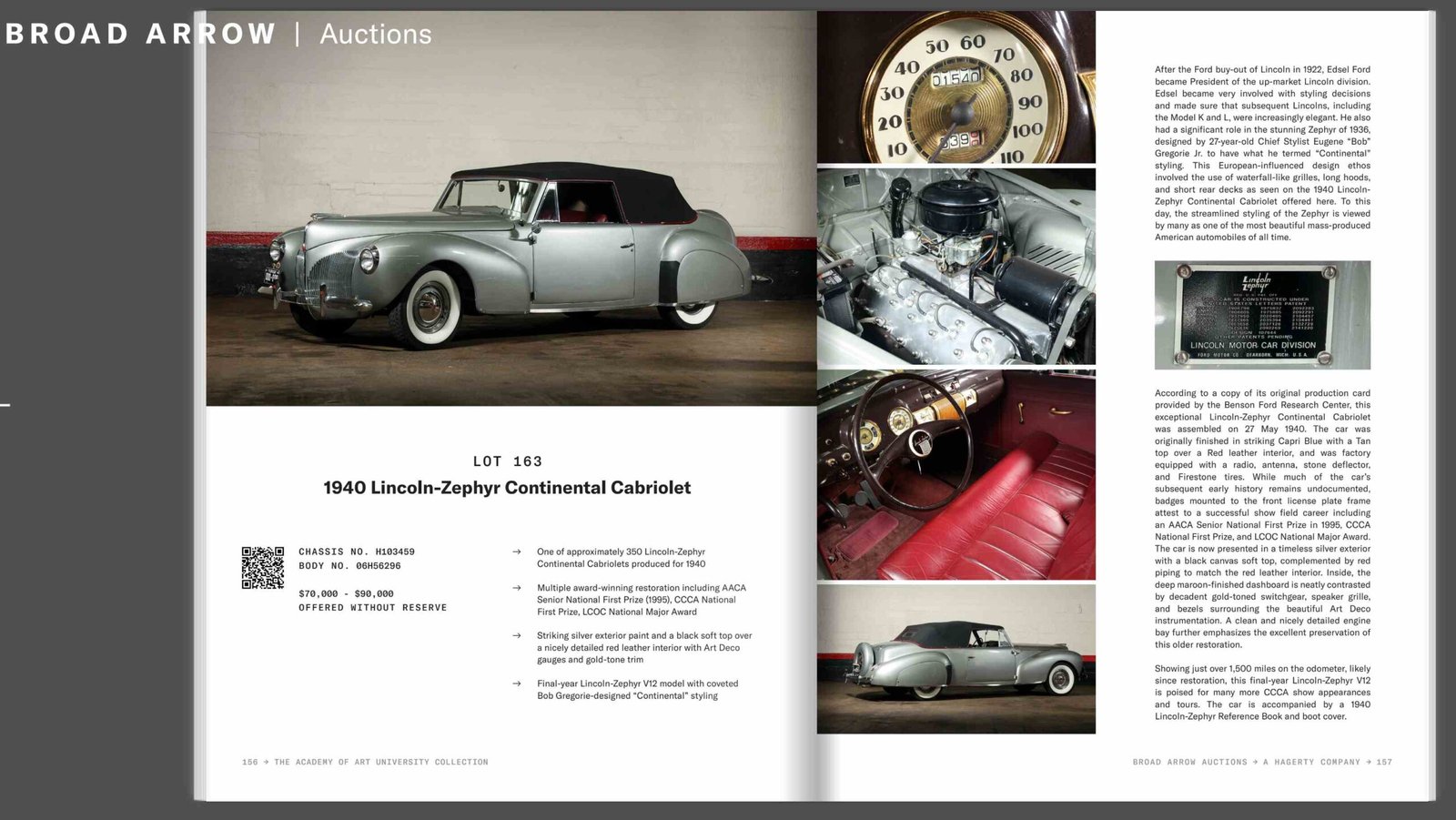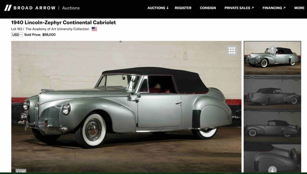 Photos accompanying the sale listing for Broad Arrow Auctions At San Francisco CA in February 2025: