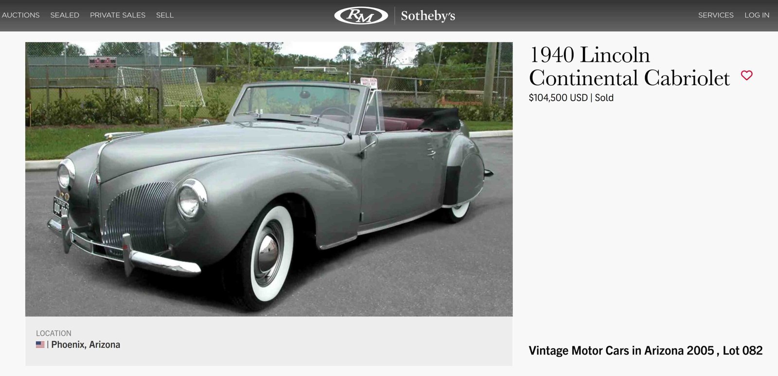 RM Sotheby’s Auction At Phoenix, AZ in January 2005, Result: