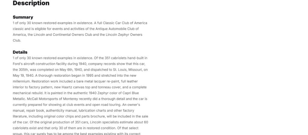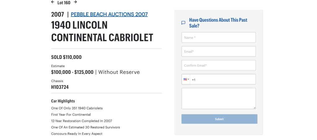 Sale listing in August 2007 by Gooding & Co at Pebble Beach, CA: