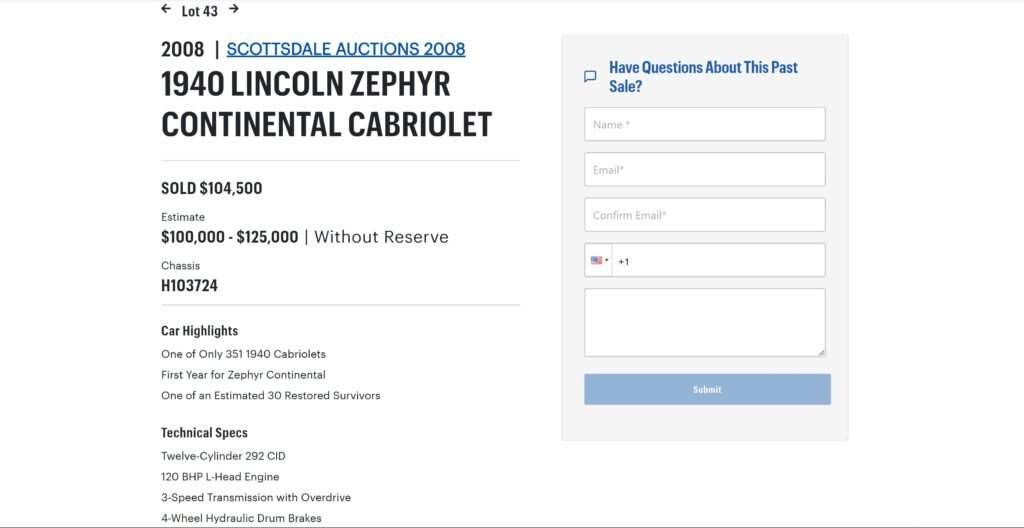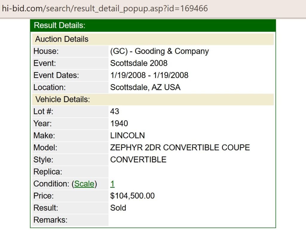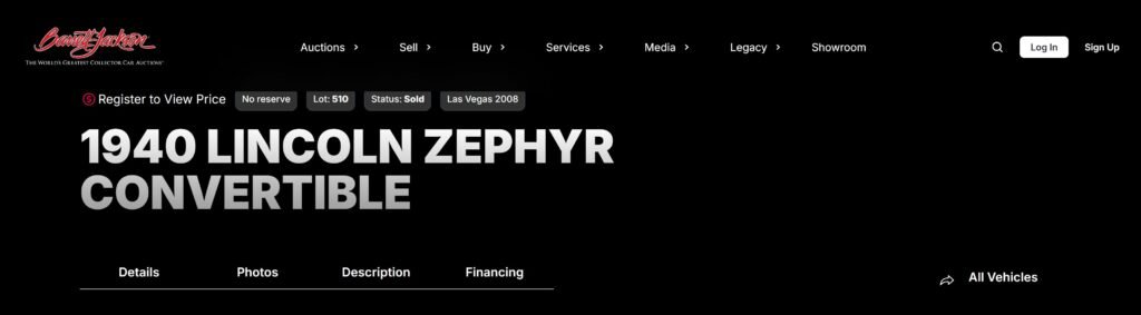 Sale listing in January 2008 by Gooding & Co at Scottsdale, AZ:
