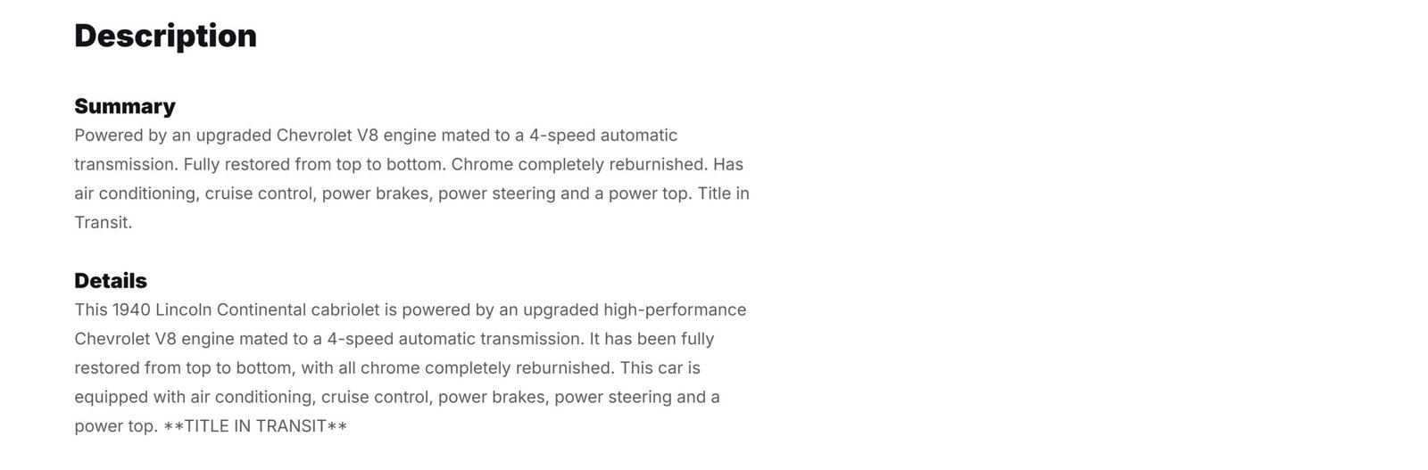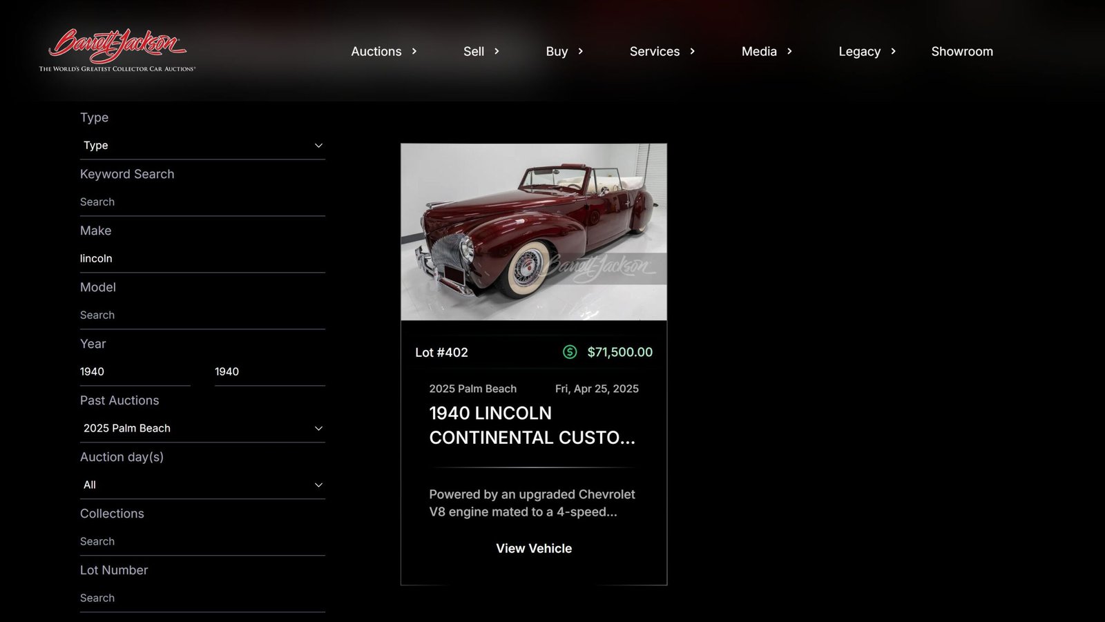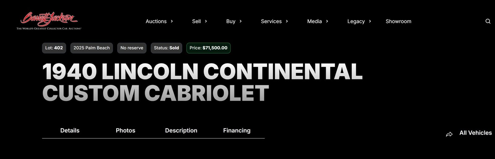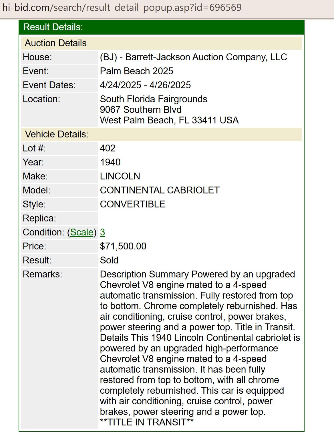 Sale listing in April 2025 by Barrett-Jackson at West Palm Beach FL: