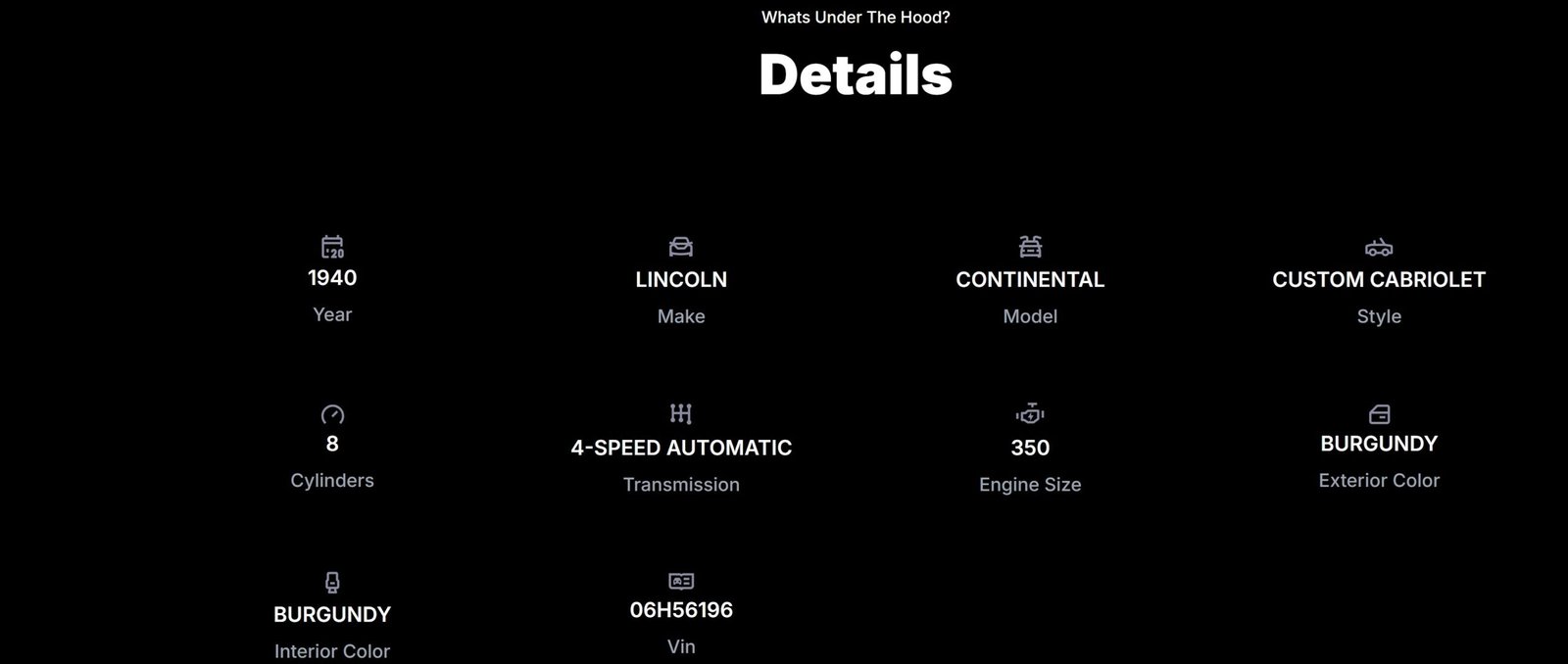 Exterior detail photos accompanying the April 2025 sale listing by Barrett-Jackson at West Palm Beach FL: