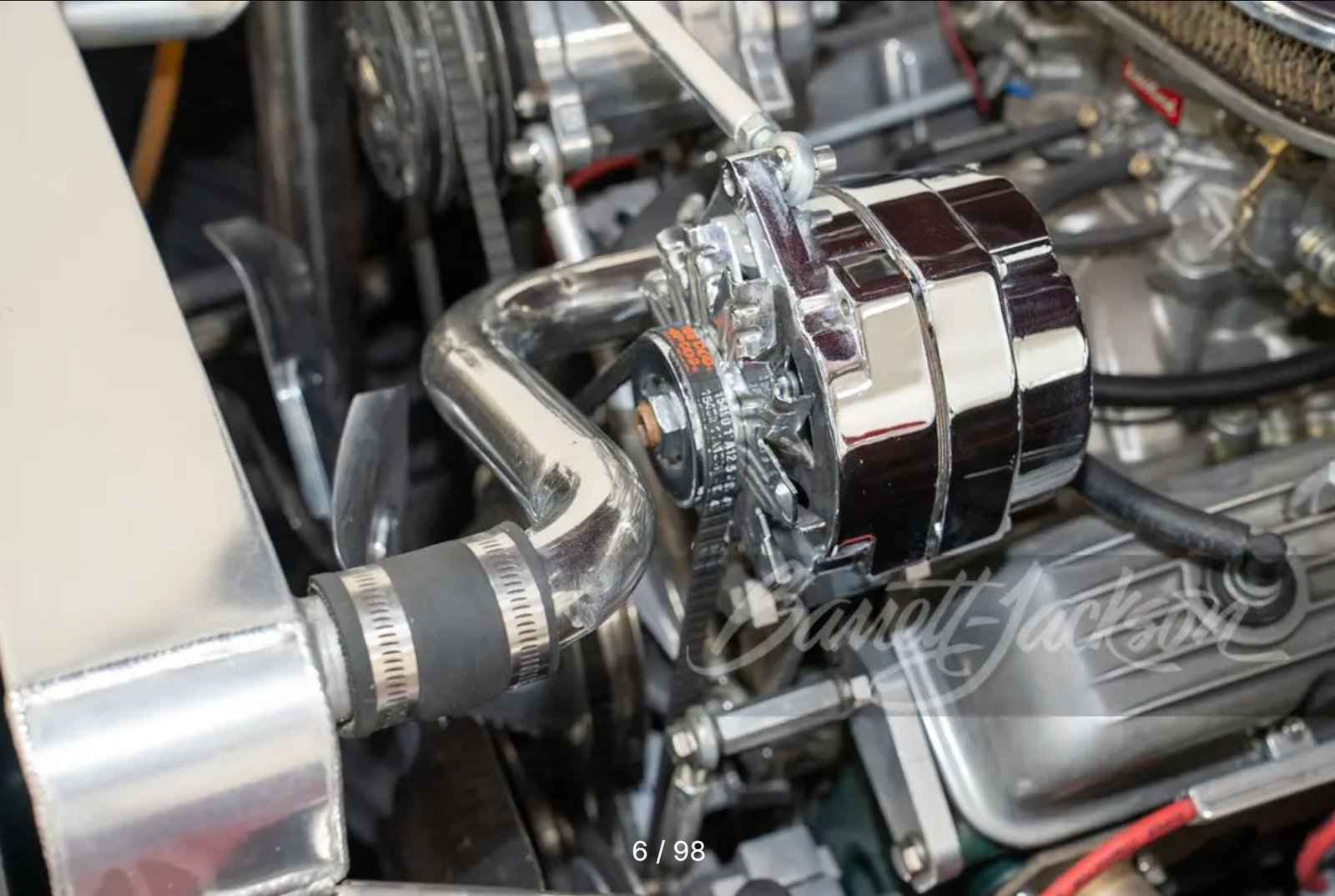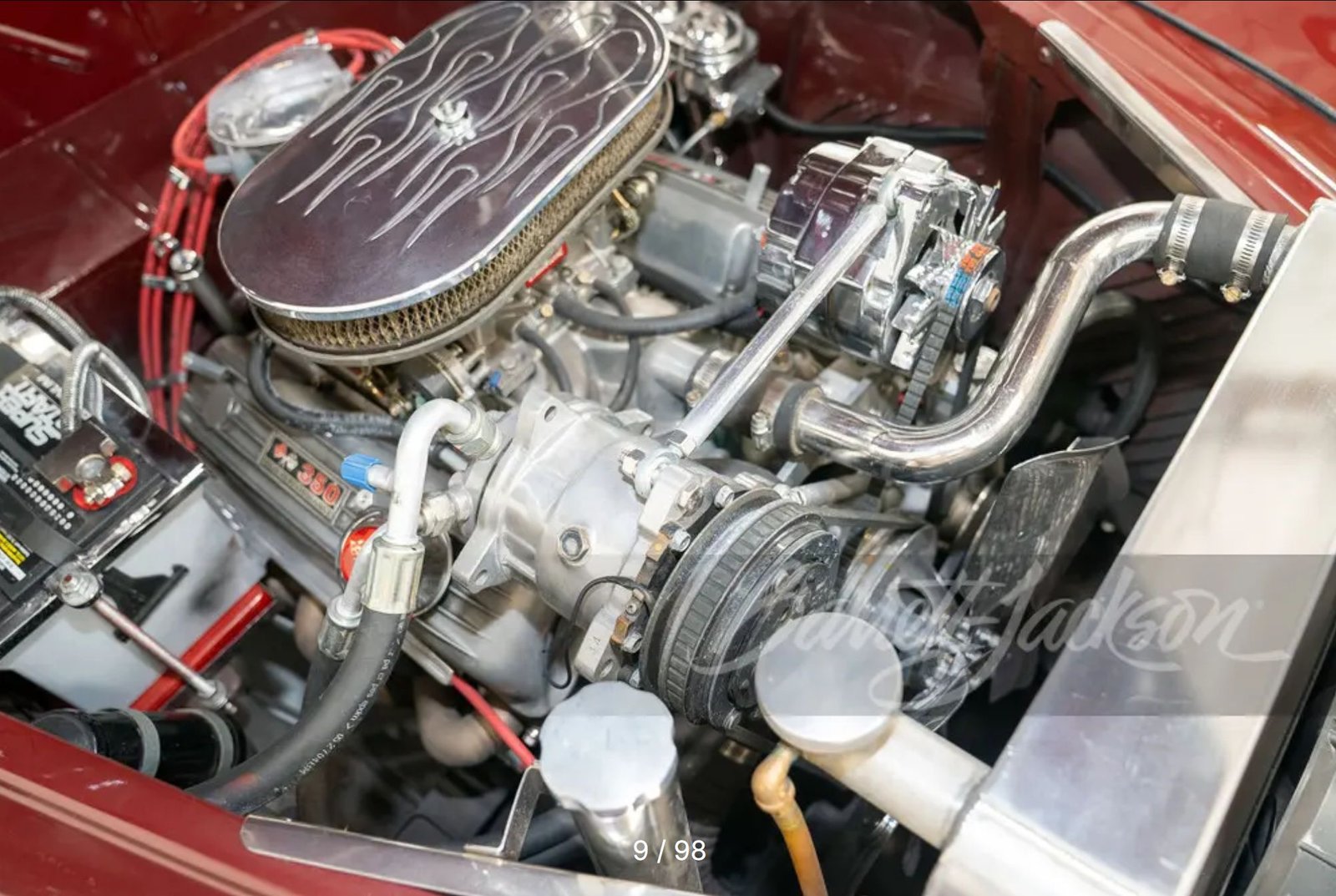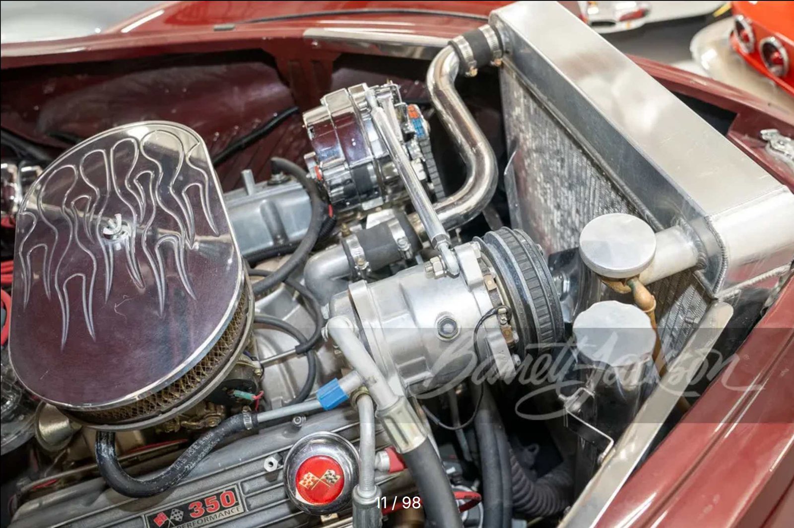 Engine bay photos accompanying the April 2025 sale listing by Barrett-Jackson at West Palm Beach FL:
