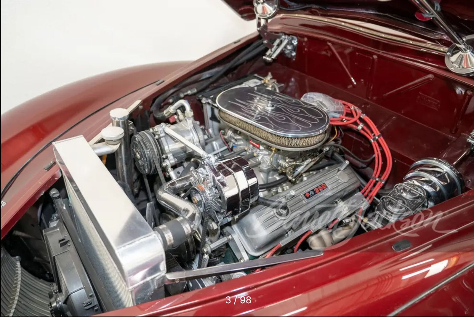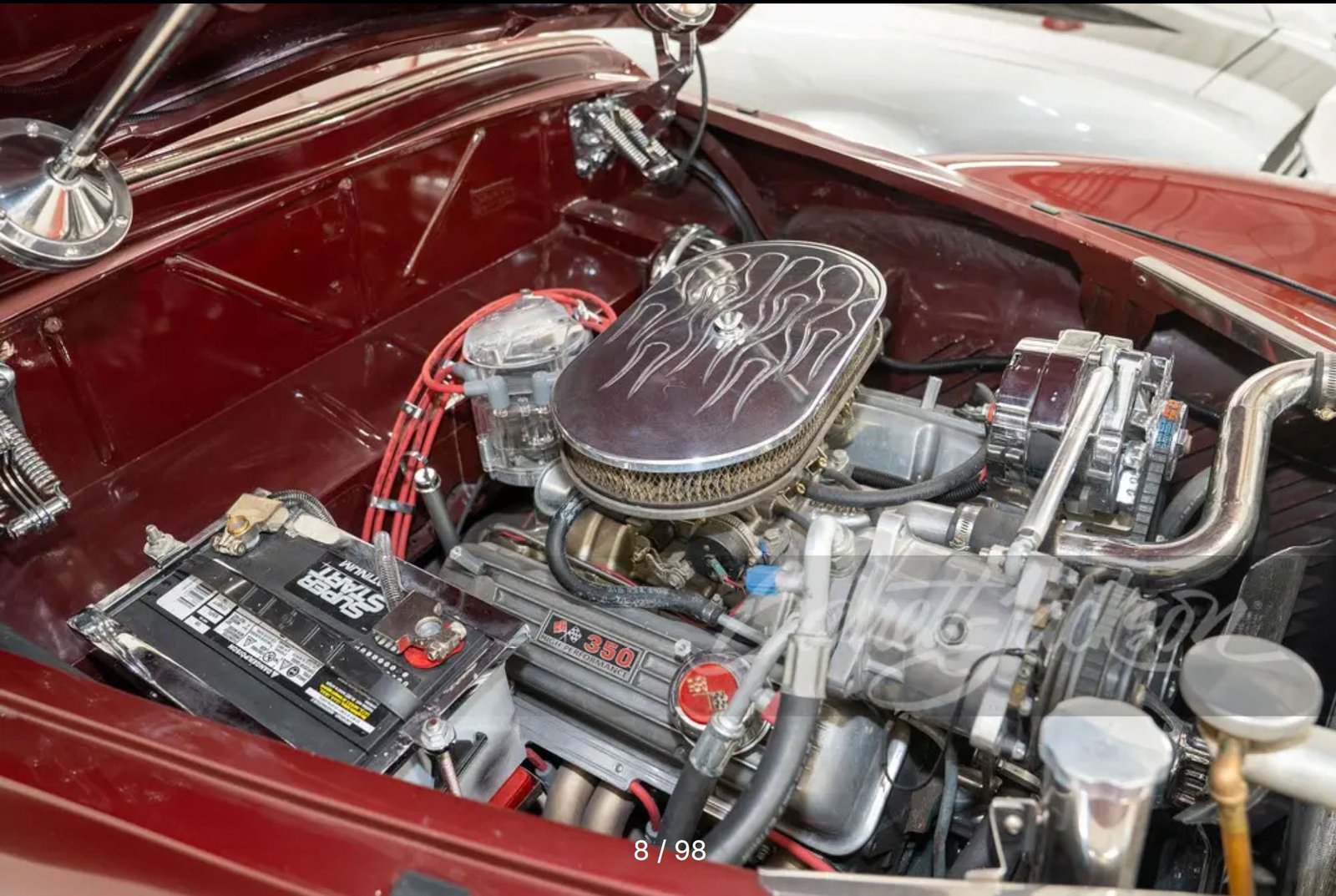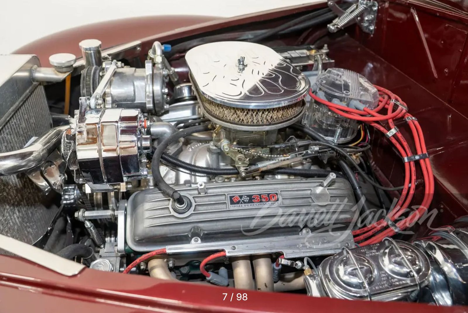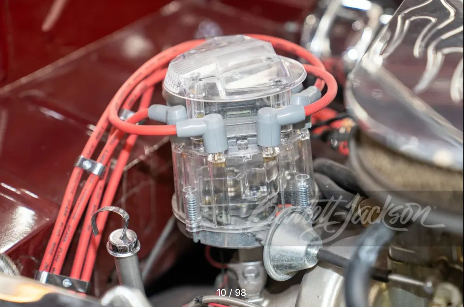 Engine bay photos accompanying the April 2025 sale listing by Barrett-Jackson at West Palm Beach FL: