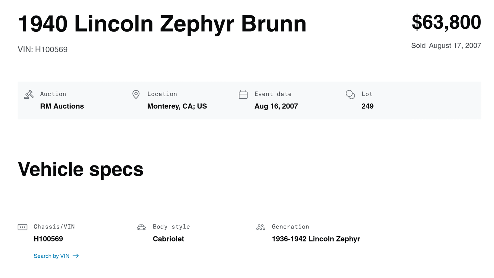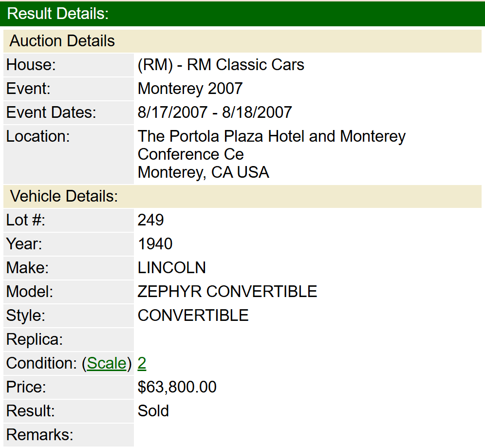 Sale Result RM Auctions auction August 2007 at Monterey, CA: