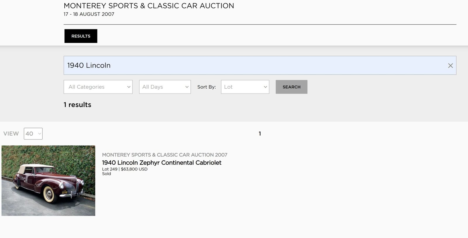 Sale Recap RM Auctions auction August 2007 at Monterey, CA: