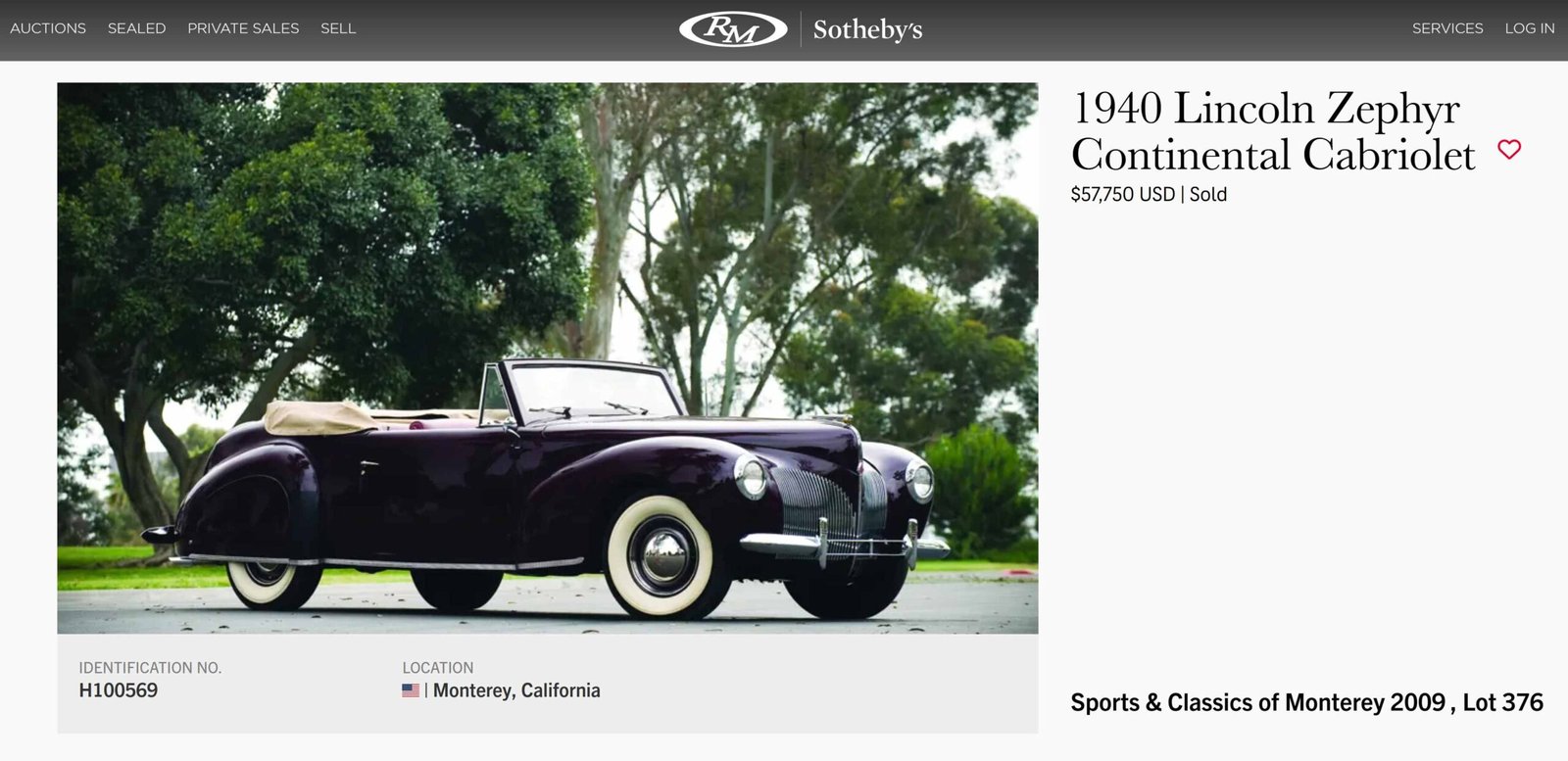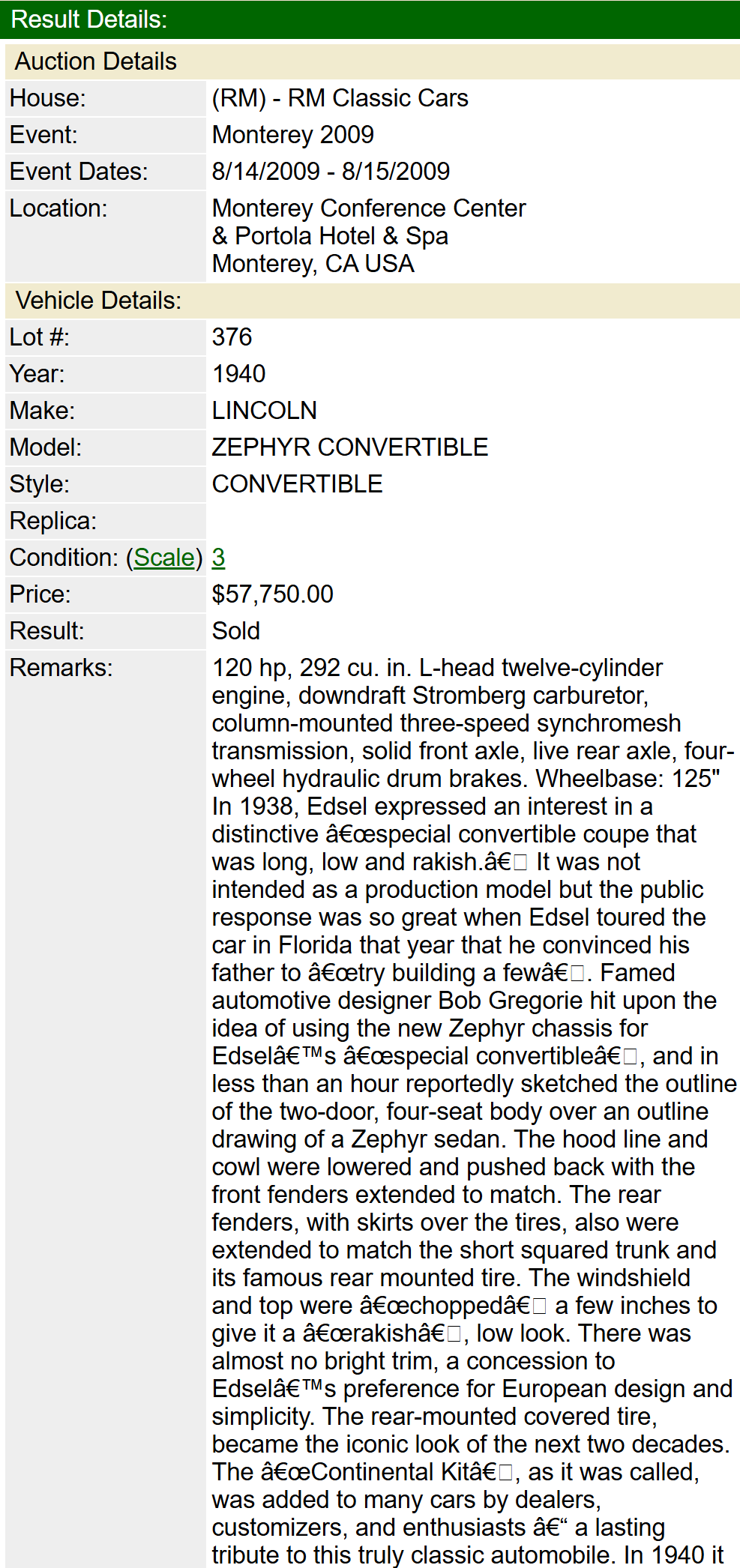 Sale Result RM Auctions auction August 2009 at Monterey, CA: