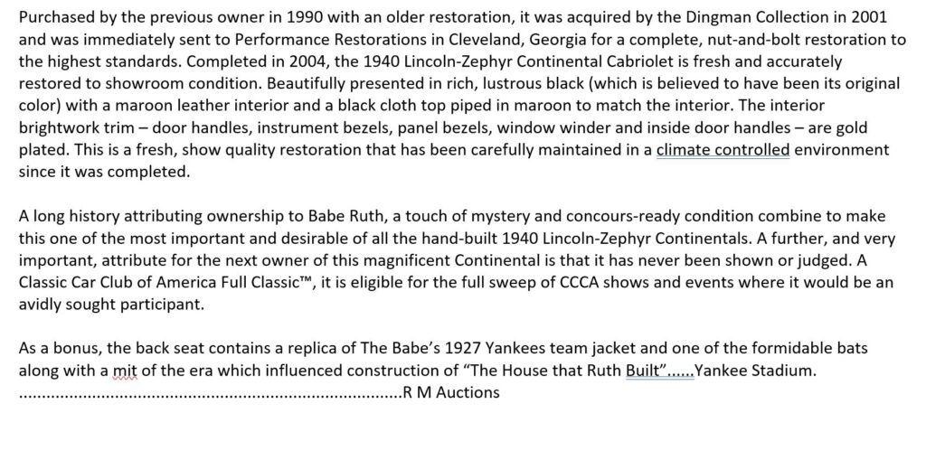 Photos accompanying the sale listing from the RM Auctions auction in 2006: