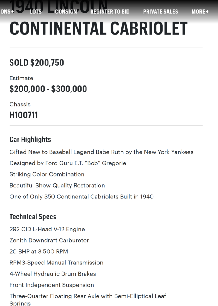 Photos accompanying the sale listing from the Gooding & Co auction in 2012: