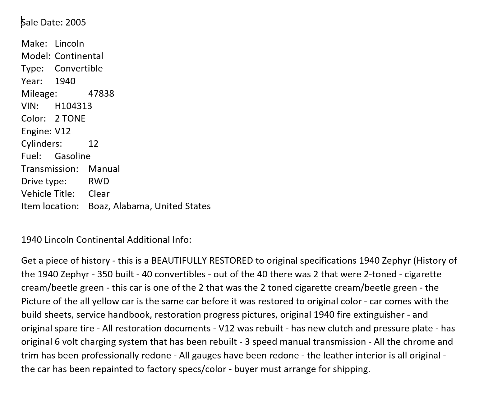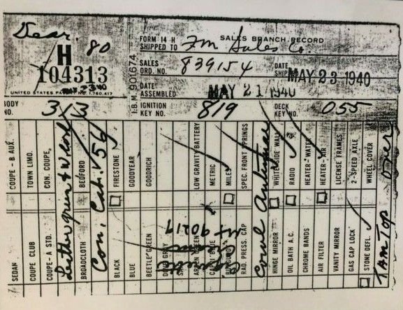 Note: Is the Body Number 313 (per build sheet) or 286 (text of sale description)? Maybe the build sheet is wrong in that the 313 is the last three digits of the Engine/Serial number?