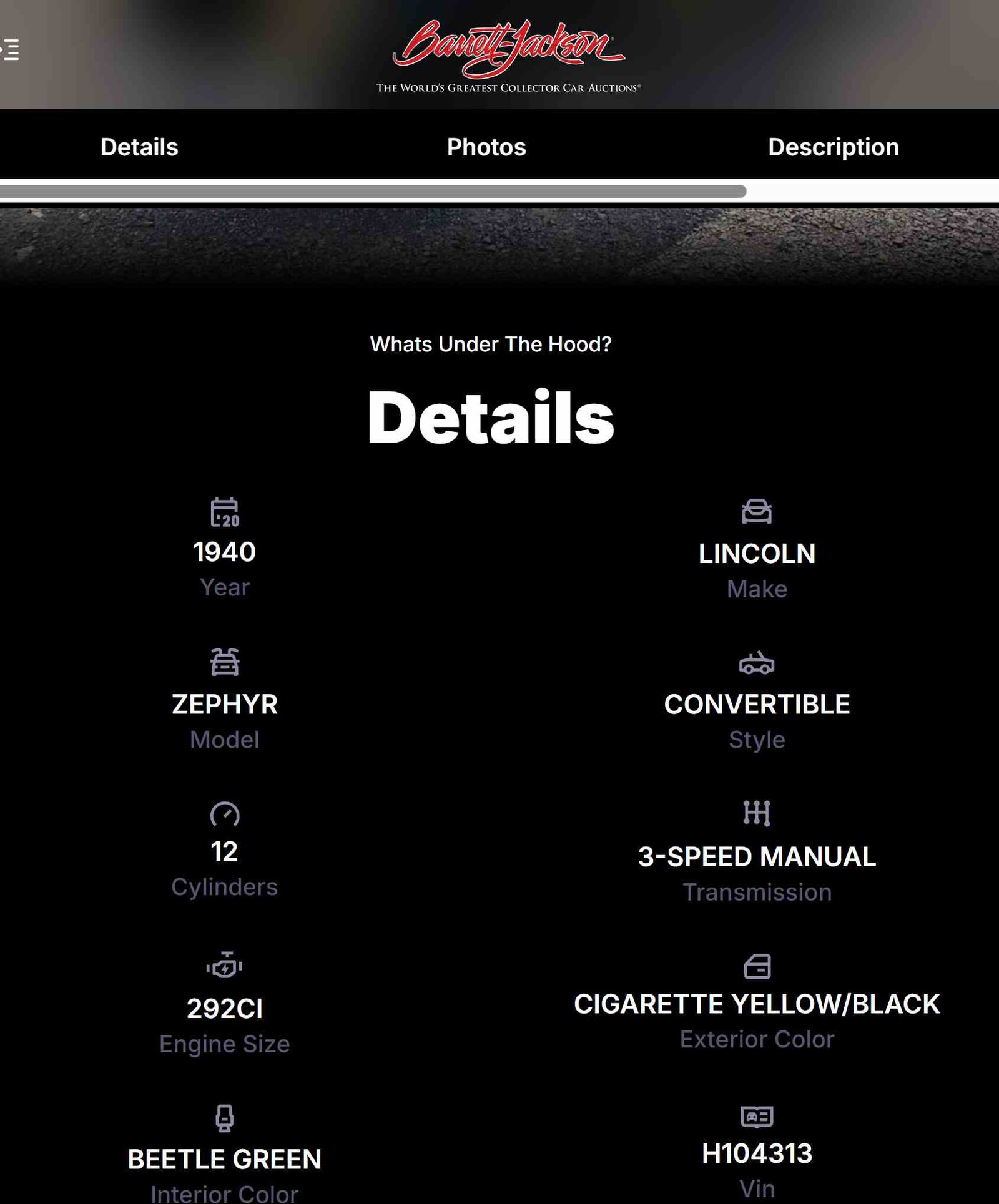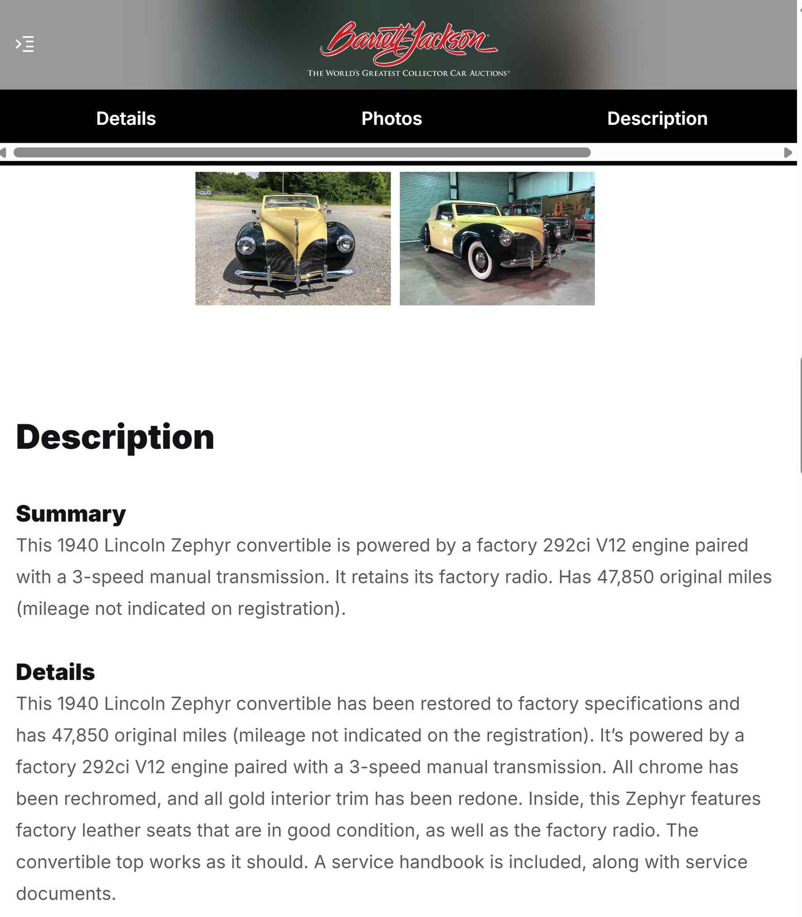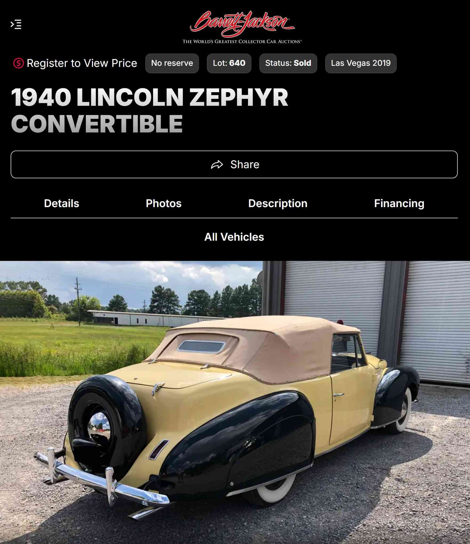 Photos accompanying the October 2019 Barrett-Jackson Auction Sale Listing: