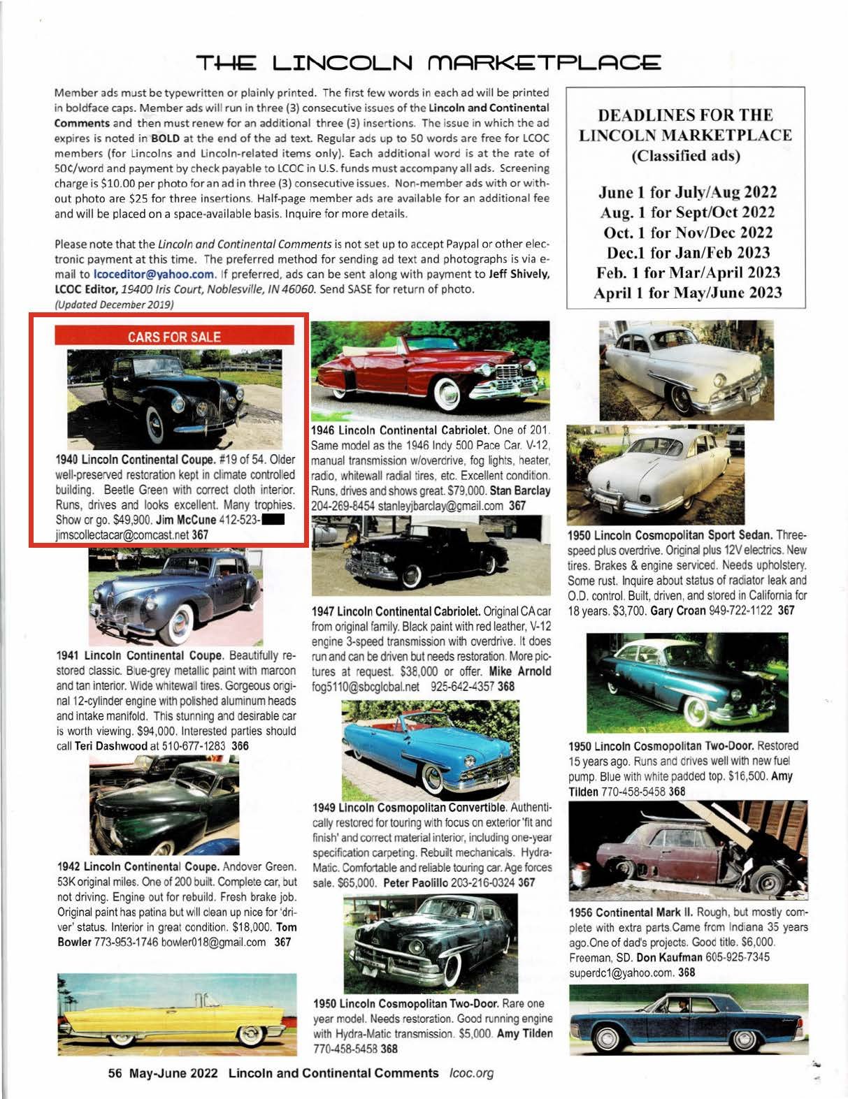 Sale listing from 2022 by Jim McCune:
