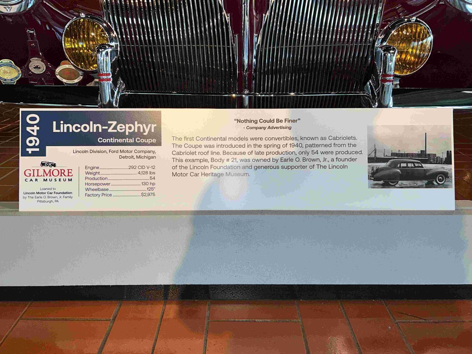 Description of the car while on display at the Lincoln Motor Car Foundation museum in 2025: