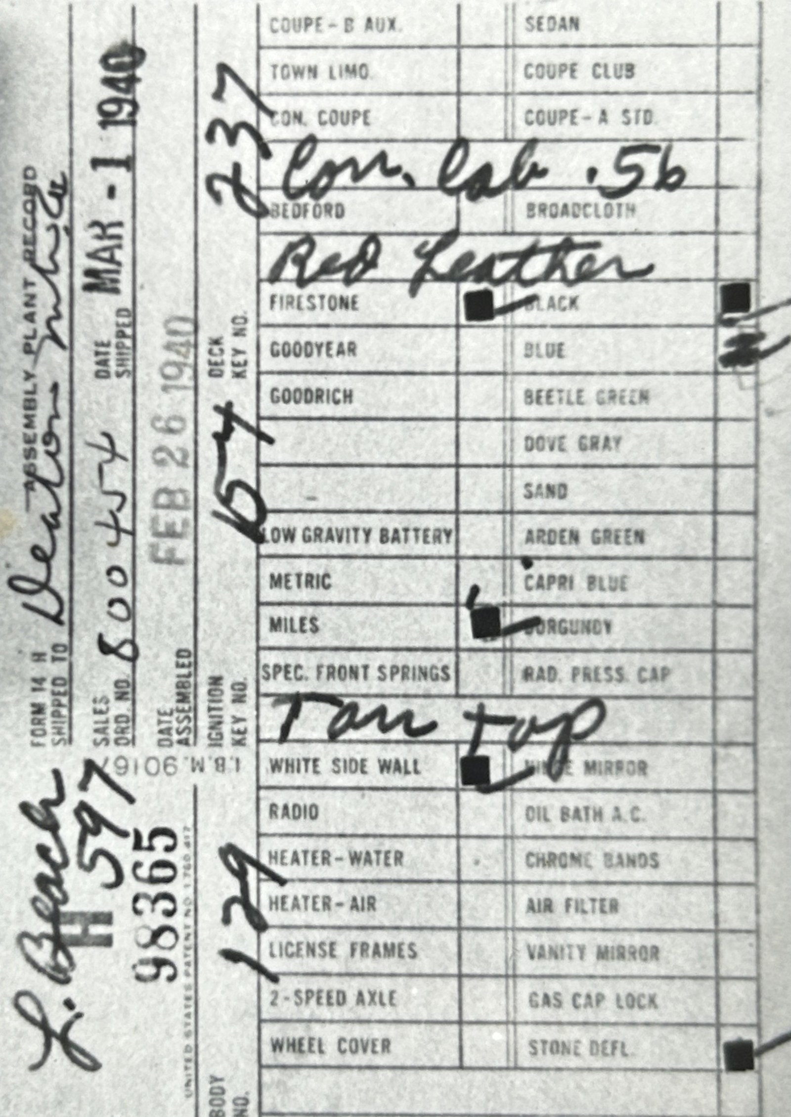 This car was owned by Herbert Wiepert of Council Bluffs, IA by early 1977. He never restored the car. Alan Whelihan purchased the car at auction from Mr. Wiepert’s estate in 1998. Alan completed the restoration of the car in 2019. He entered it in the CCCA Summer Grand Classic Primary Division at Ellicott City, MD in July 2019 where it won a first place award with a total score of 99.5. The car’s Senior Badge Number is 3343. Alan sold the car to the current owner in 2021.