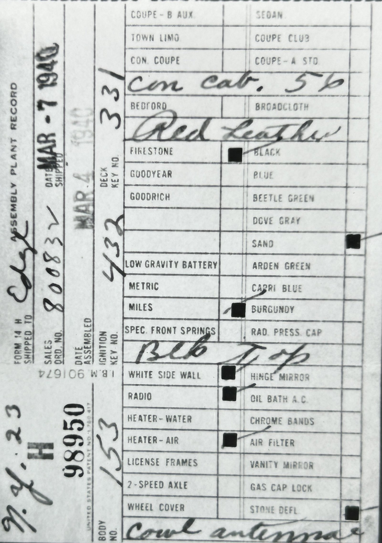 Assembly Plant Record (APR):
