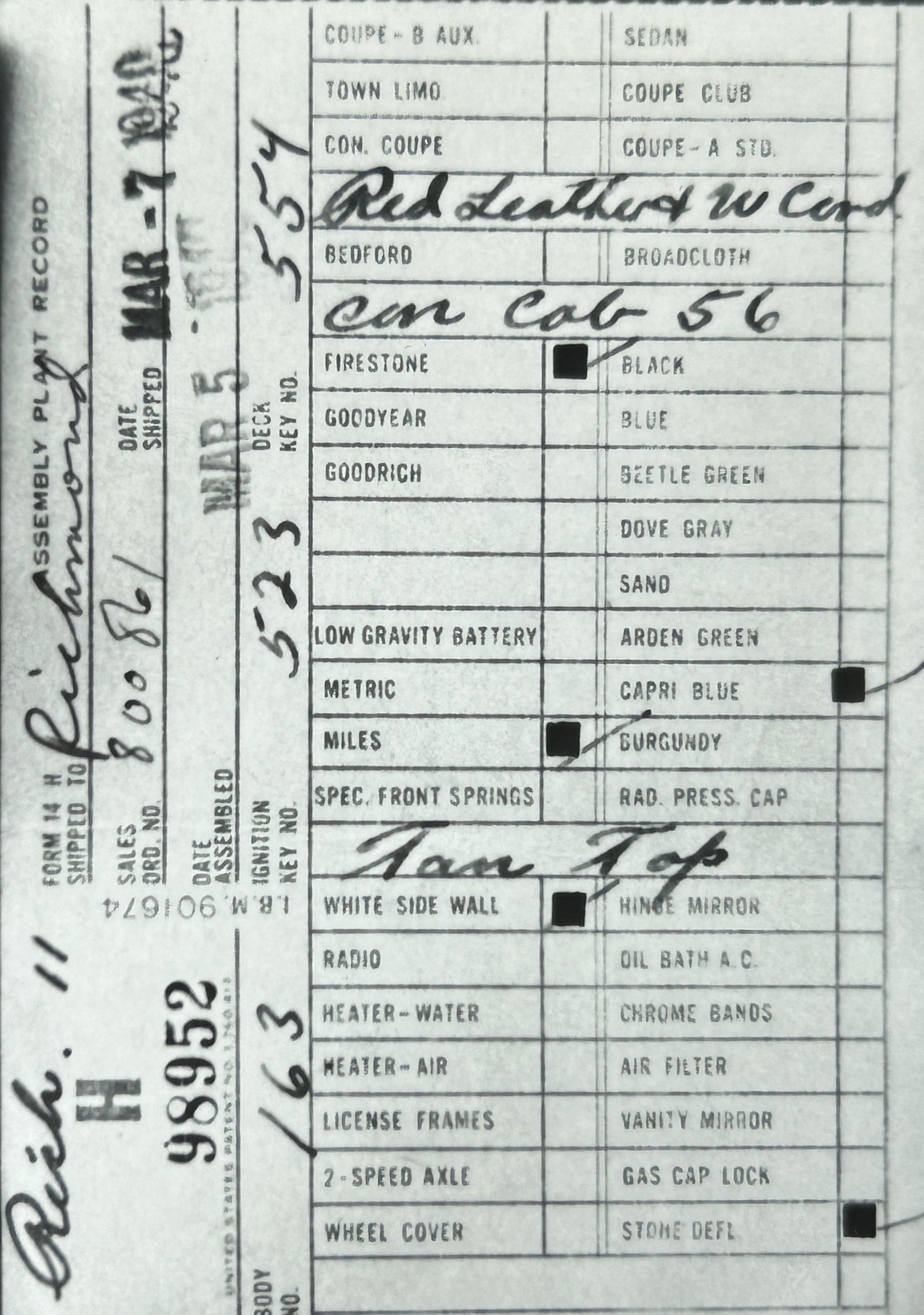 Assembly Plant Record (APR):