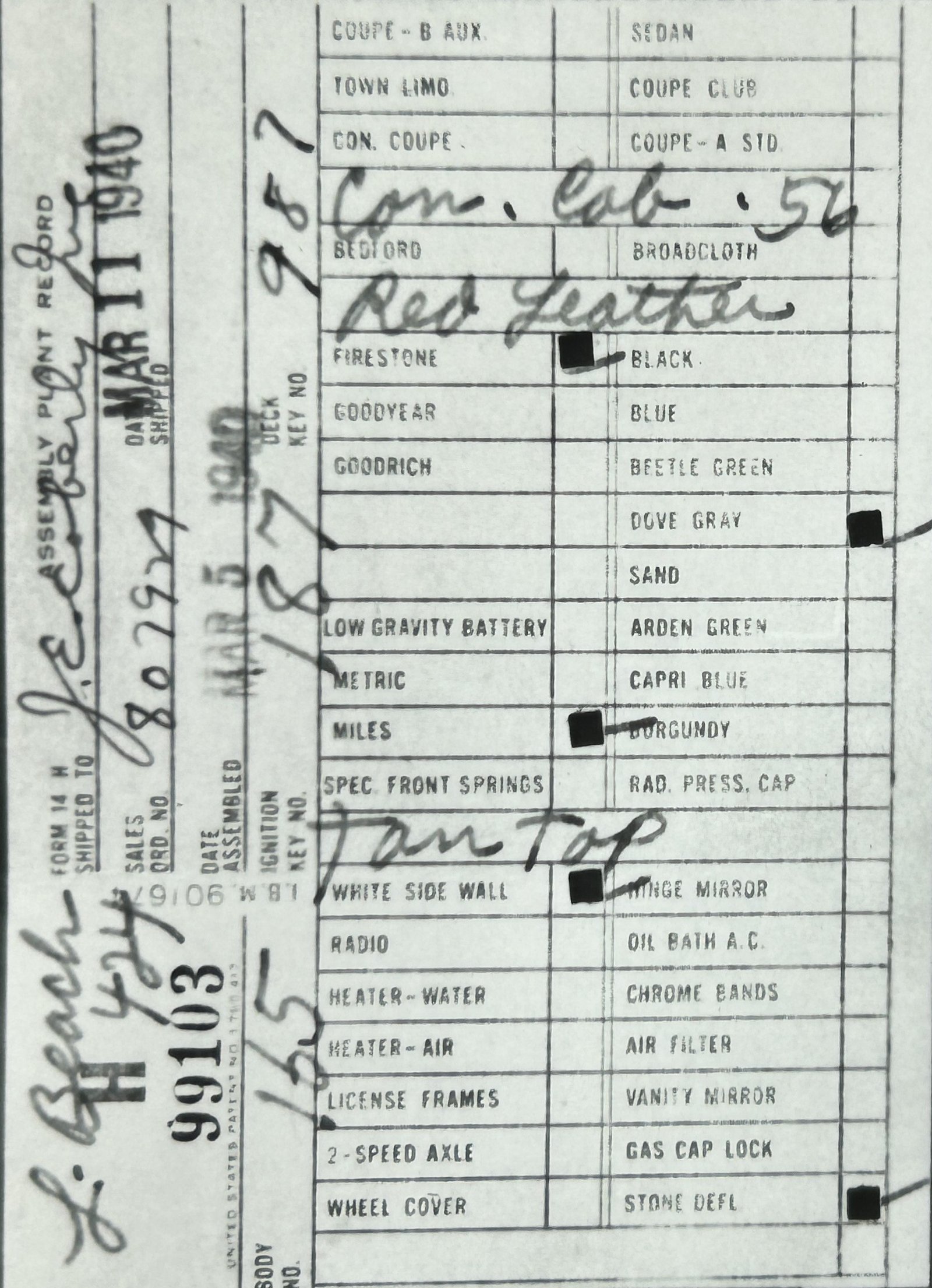 the car before and/or after these dates.