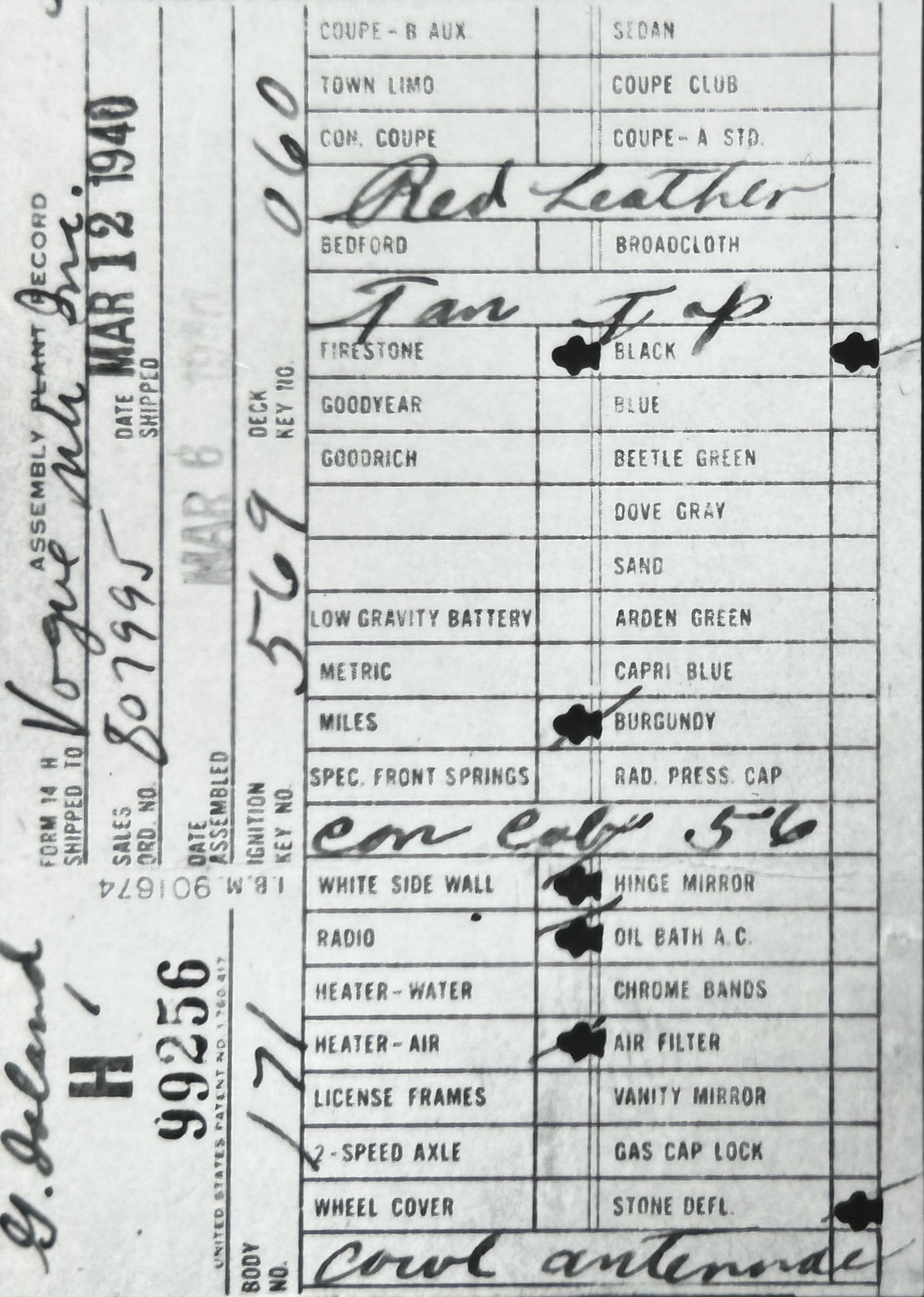 the car before and/or after these dates.