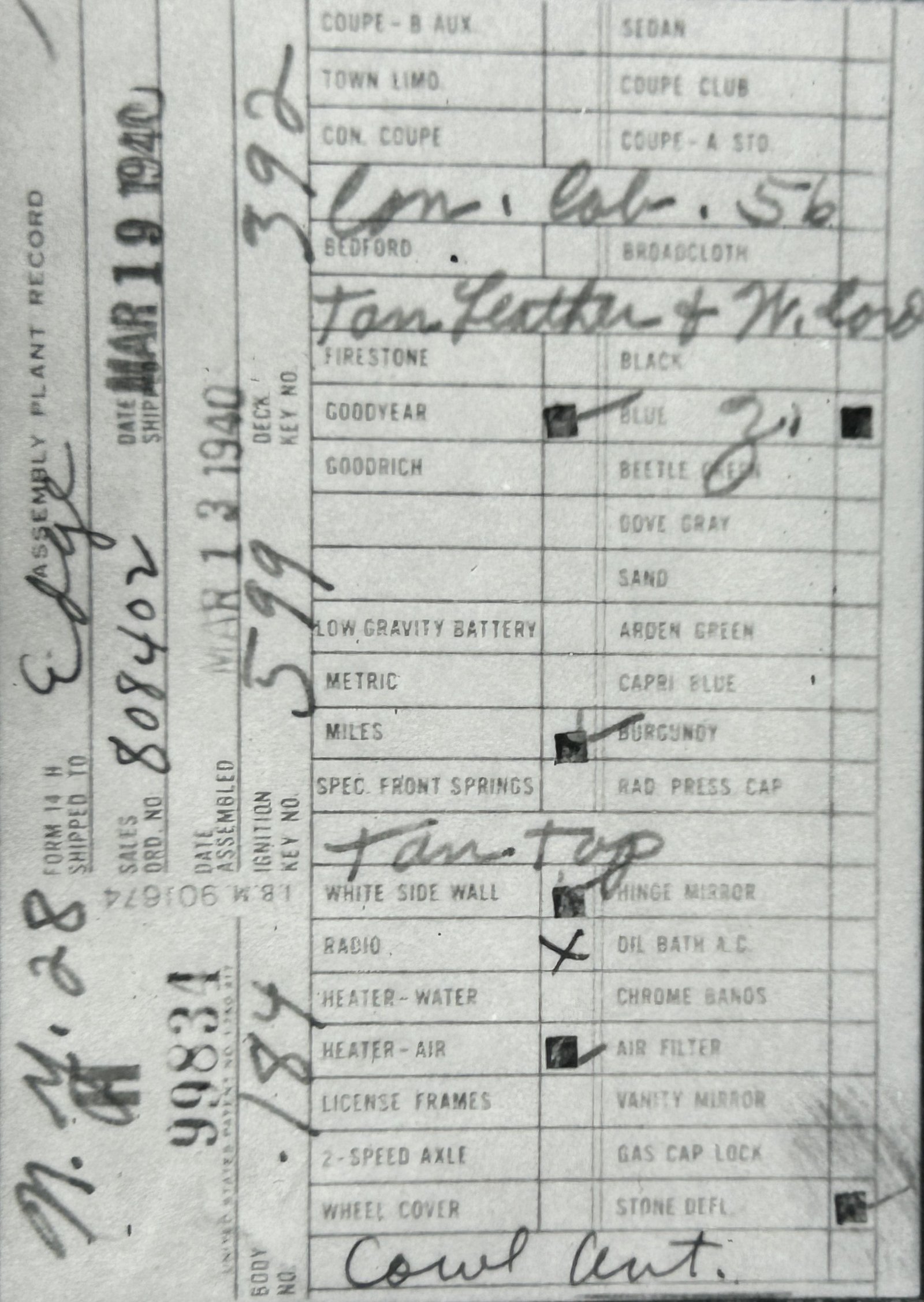 the car before and/or after these dates.