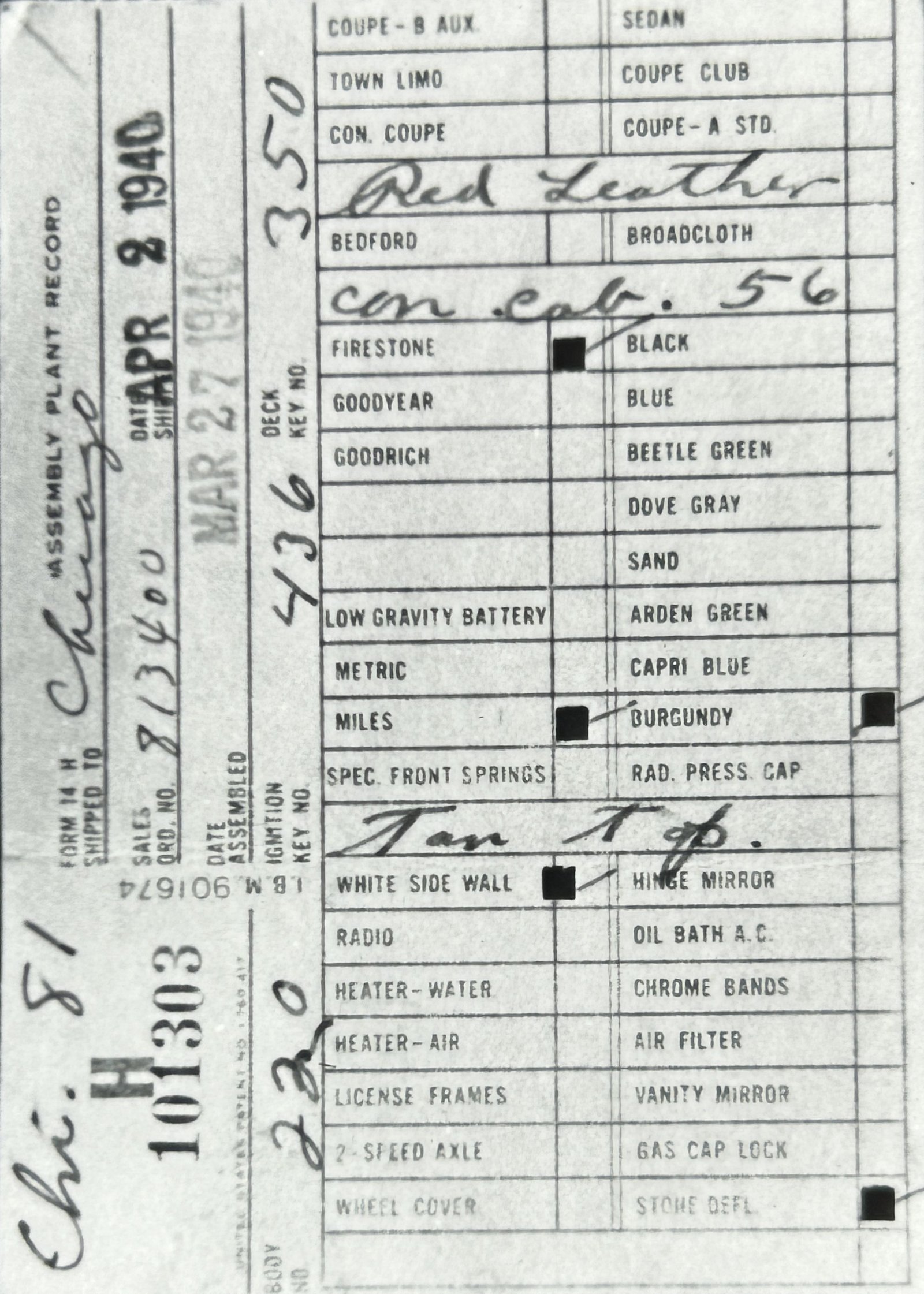 the car before and/or after these dates.