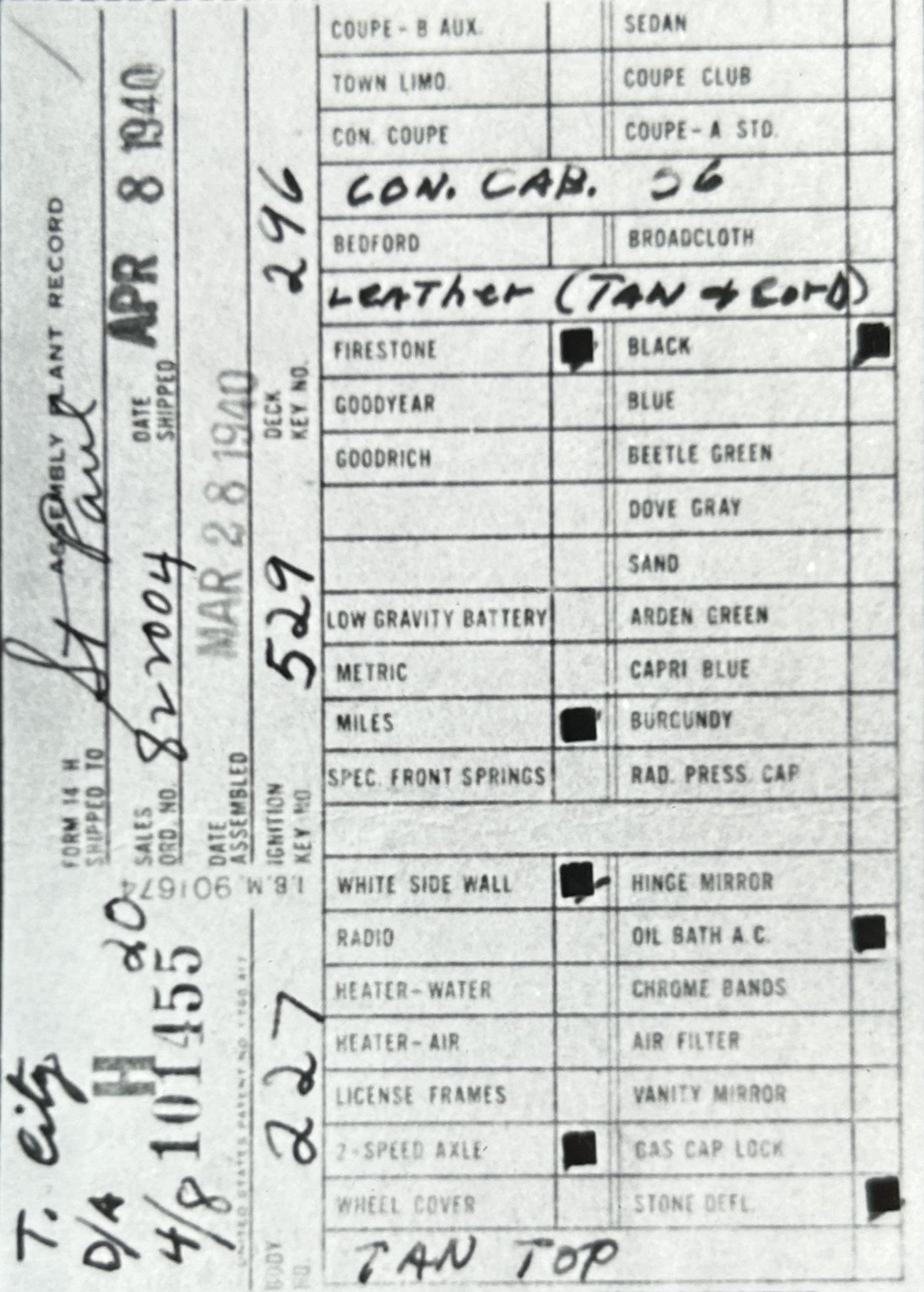 Assembly Plant Record (APR):