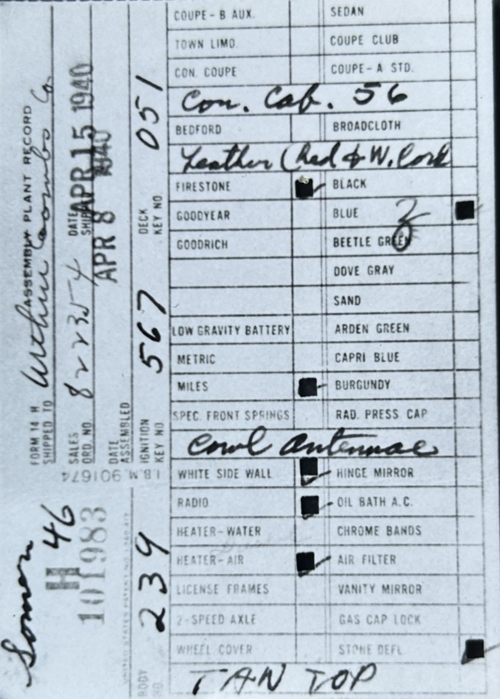 the car before and/or after these dates.