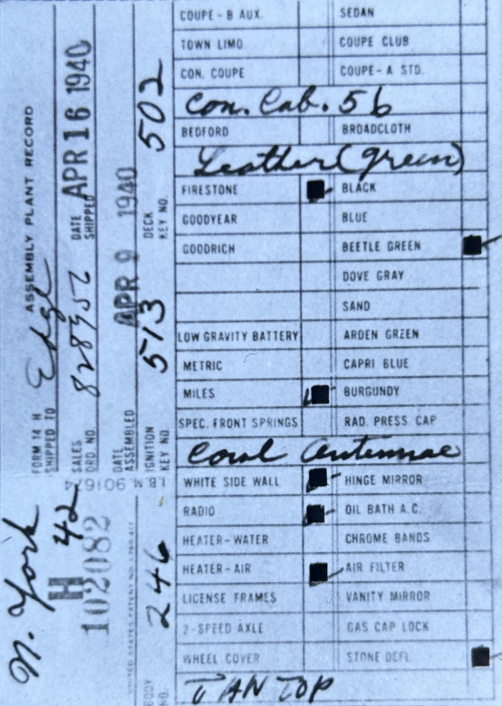 the car before and/or after these dates.