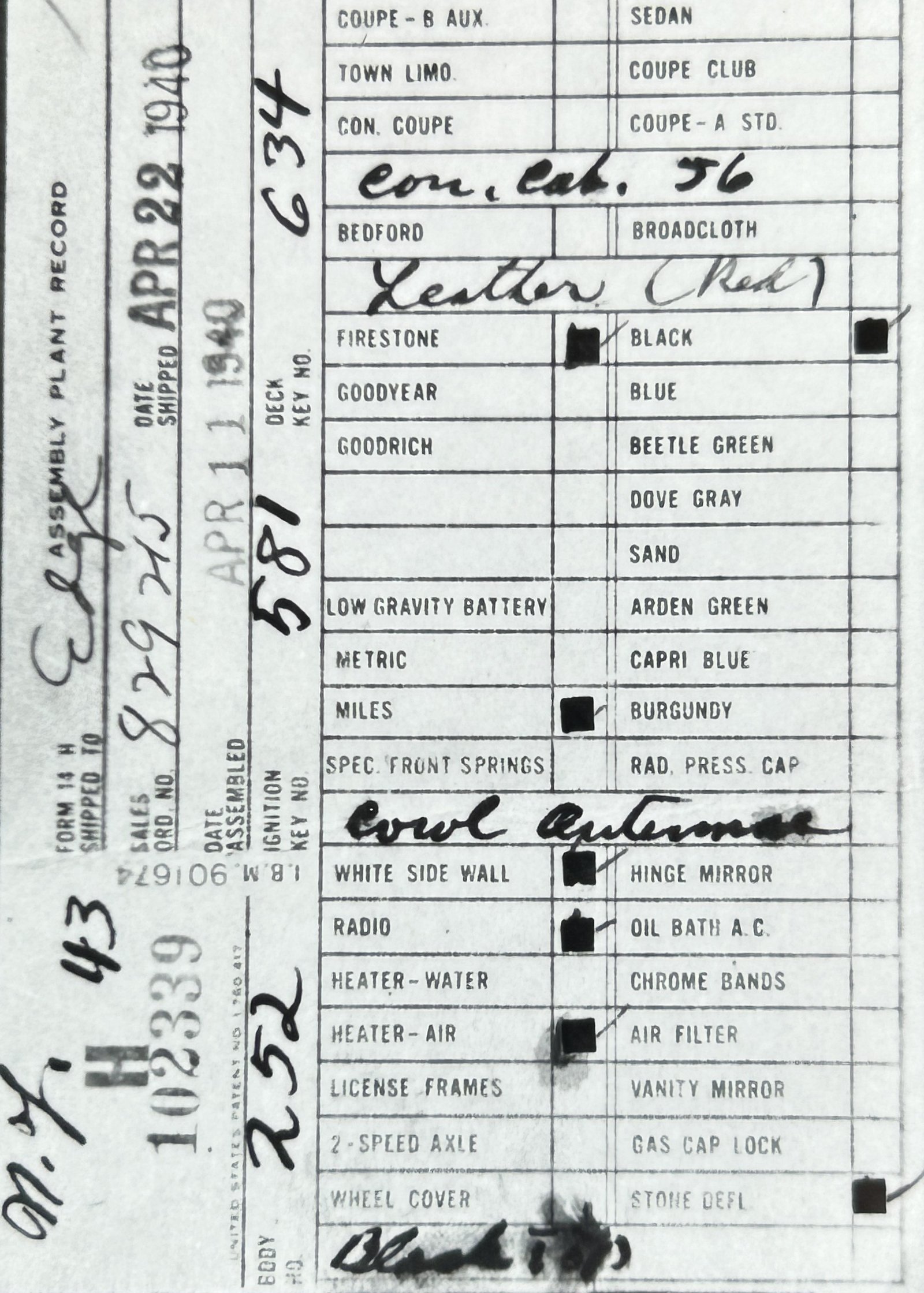 Assembly Plant Record (APR):