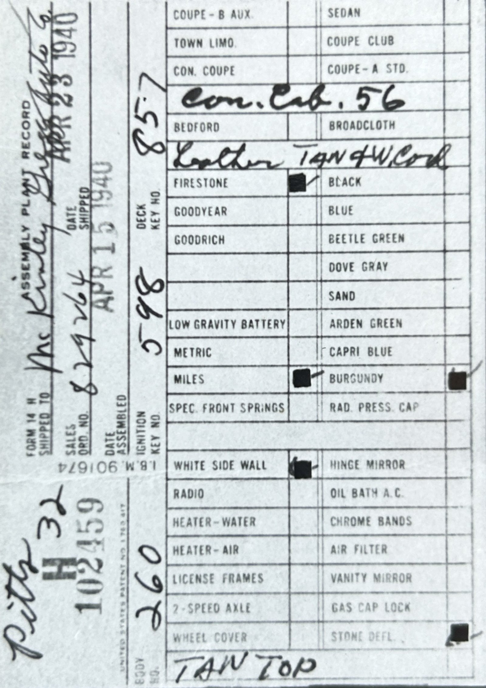 Assembly Plant Record (APR):