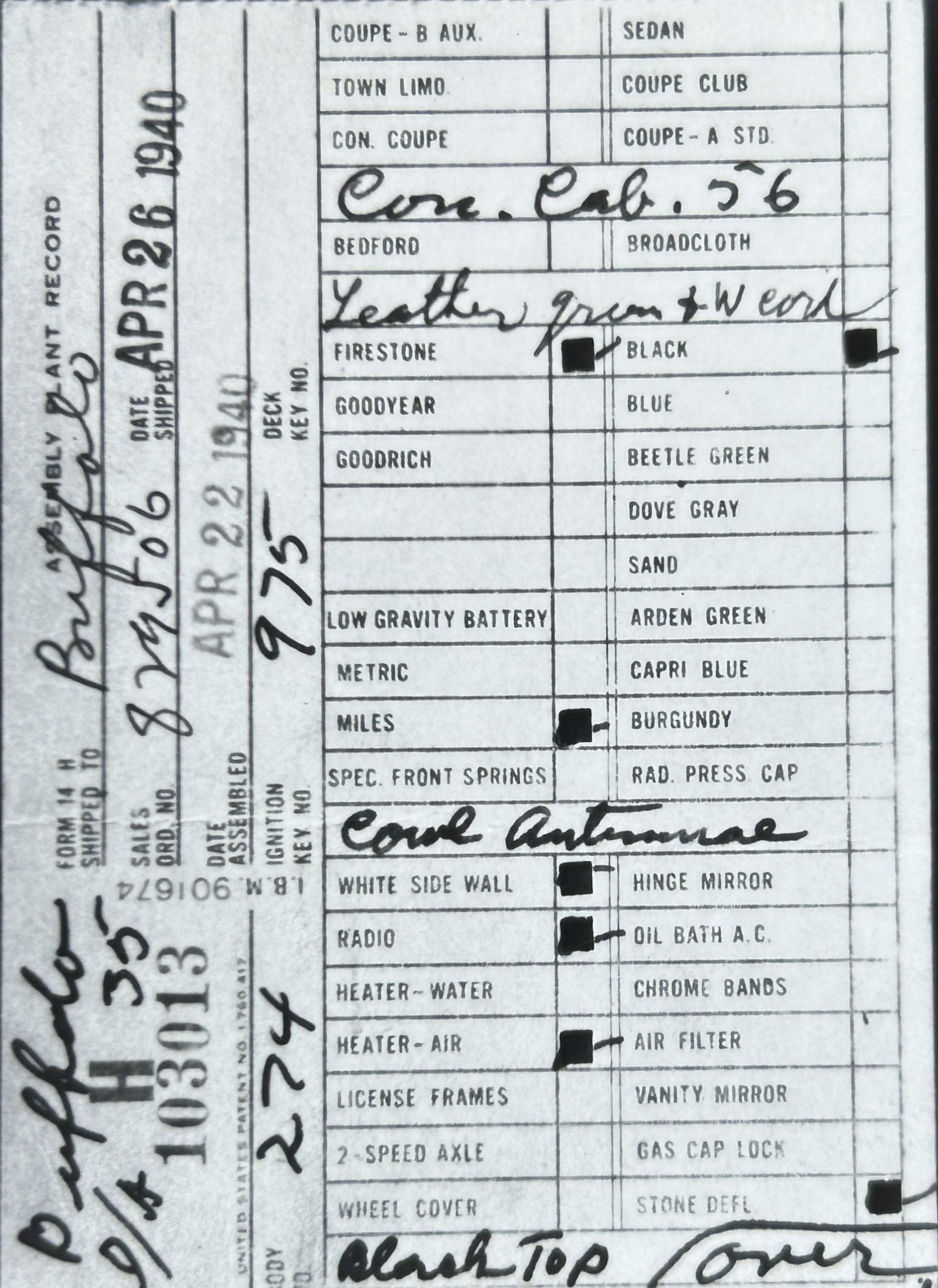 the car before and/or after these dates.
