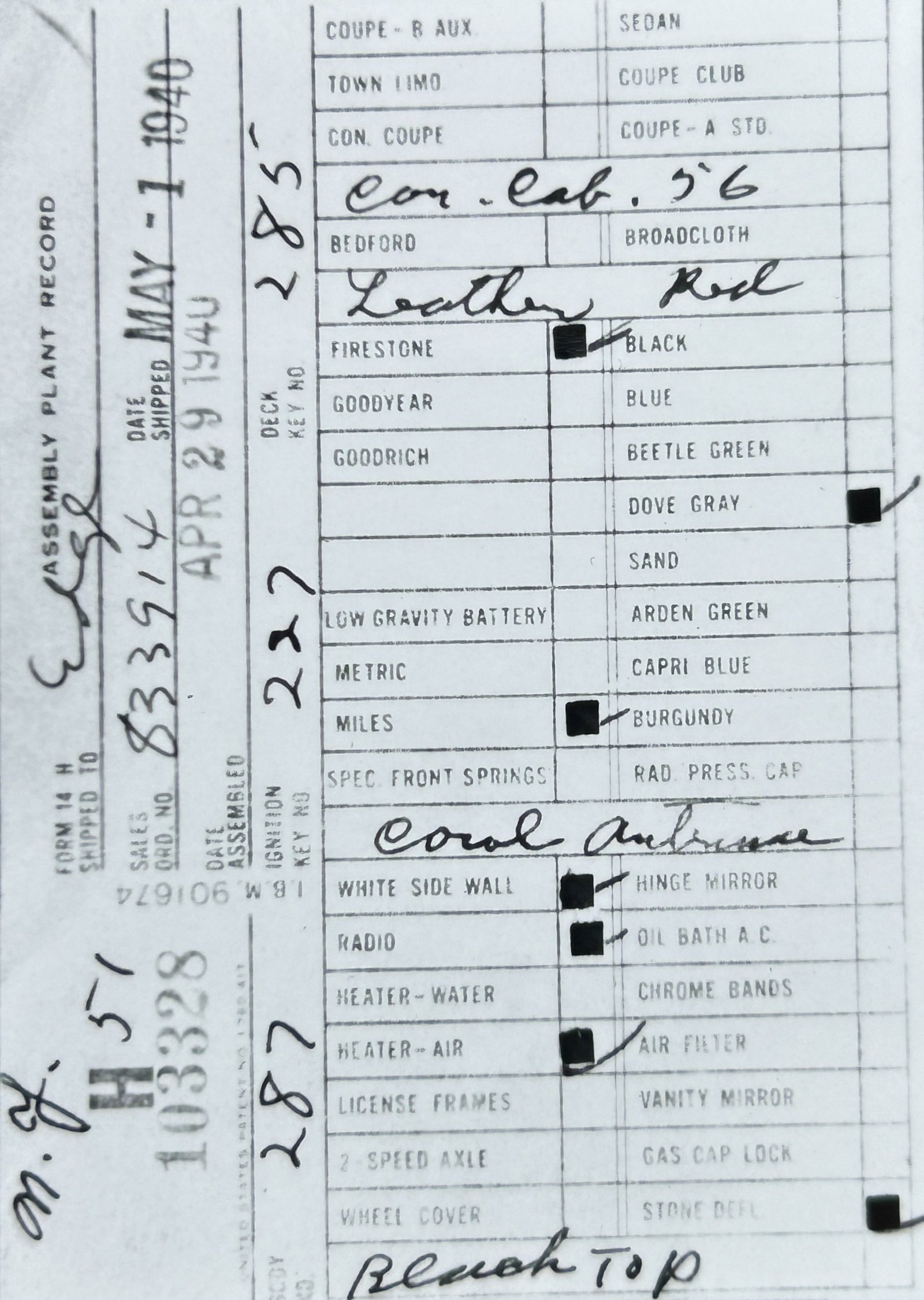 the car before and/or after these dates.