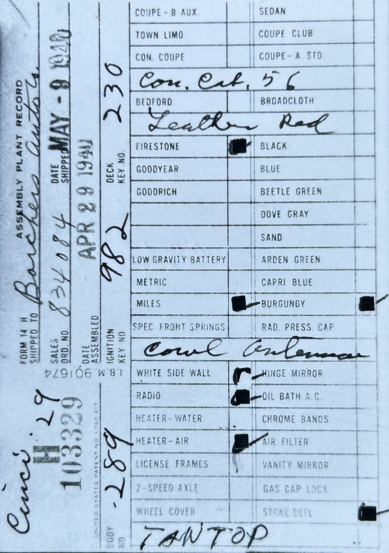 the car before and/or after these dates.