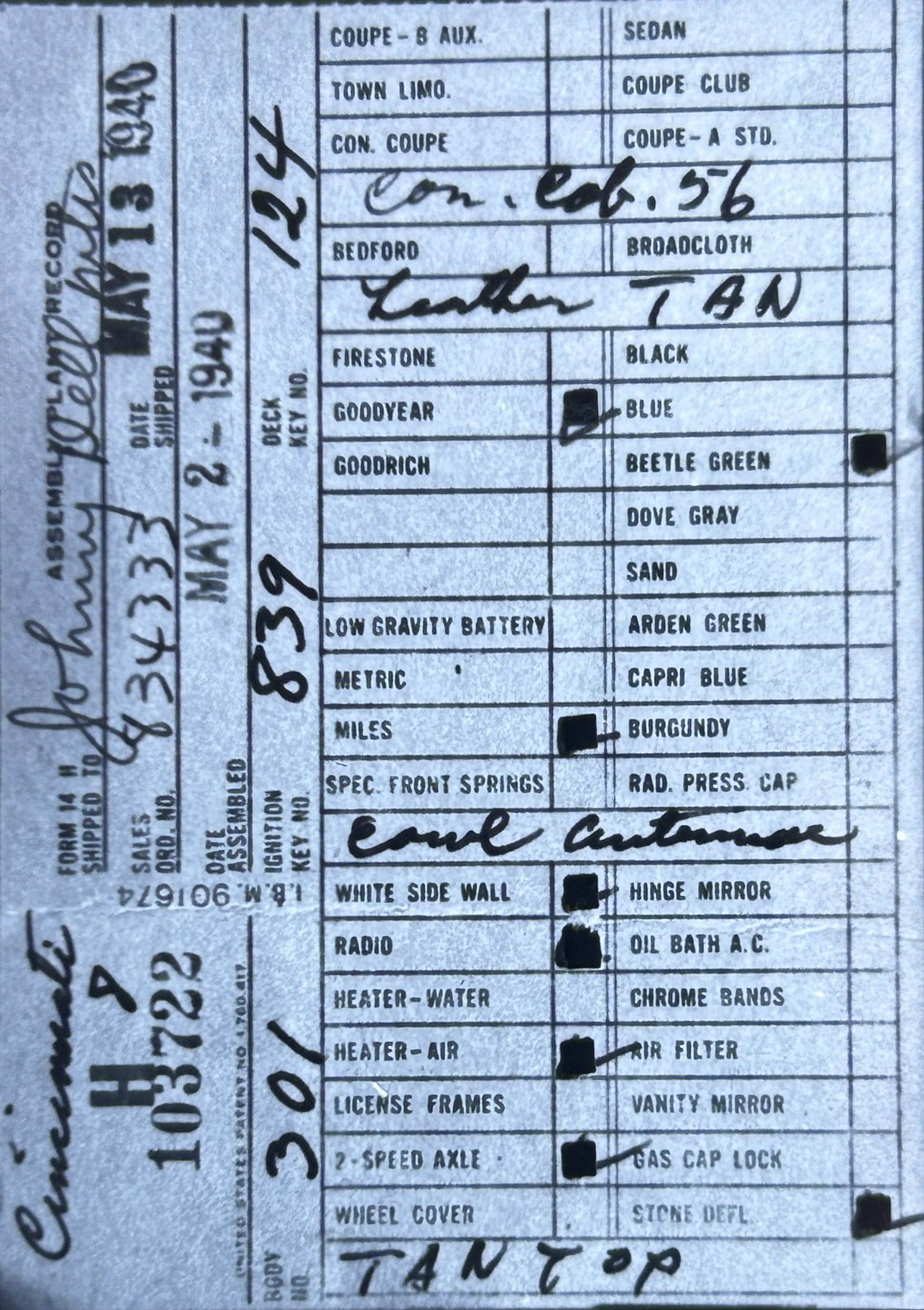 the car before and/or after these dates.