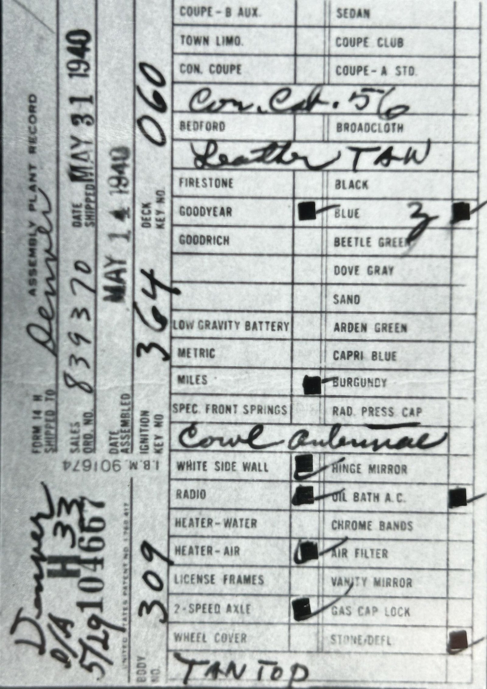 the car before and/or after these dates.