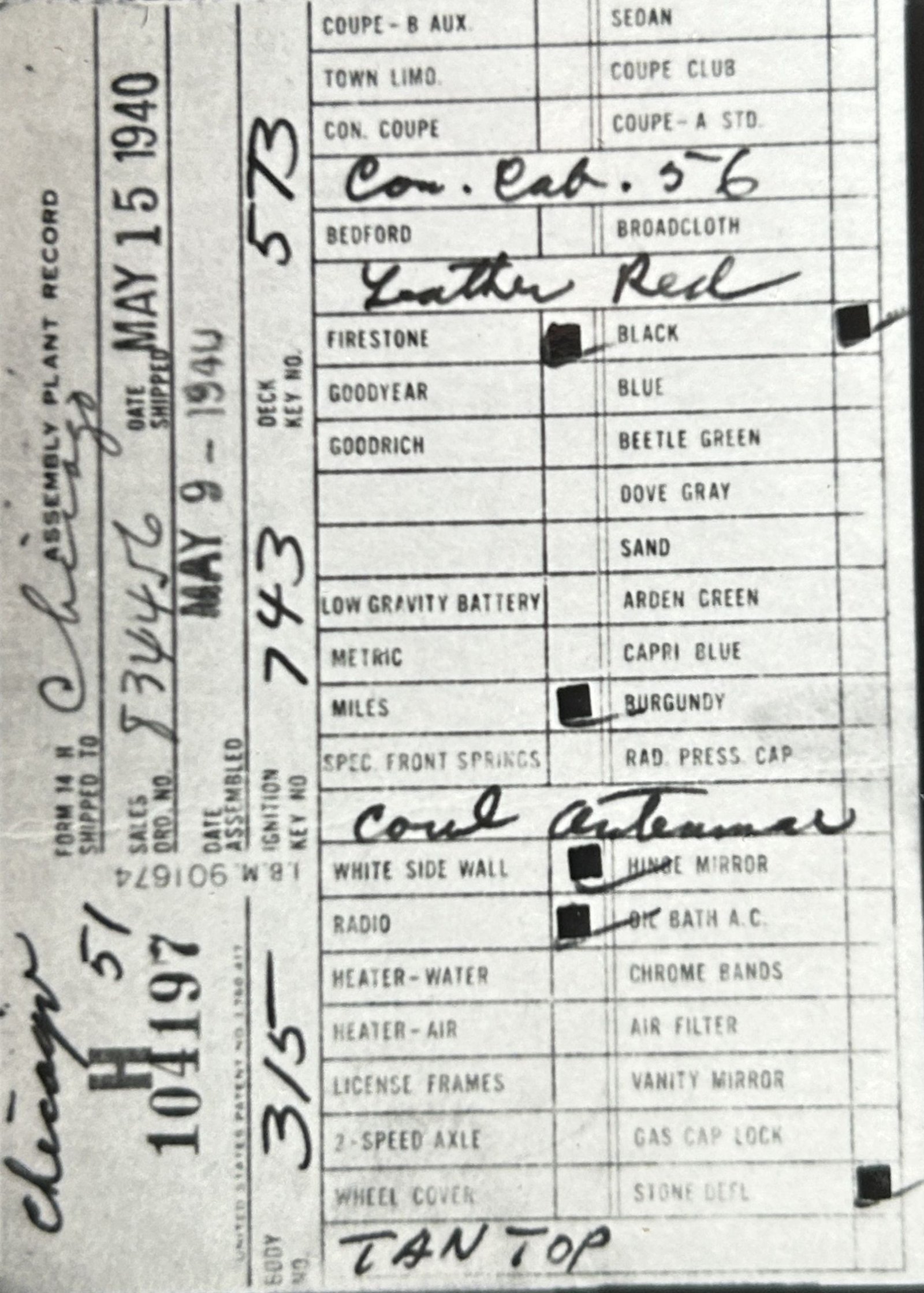 the car before and/or after these dates.