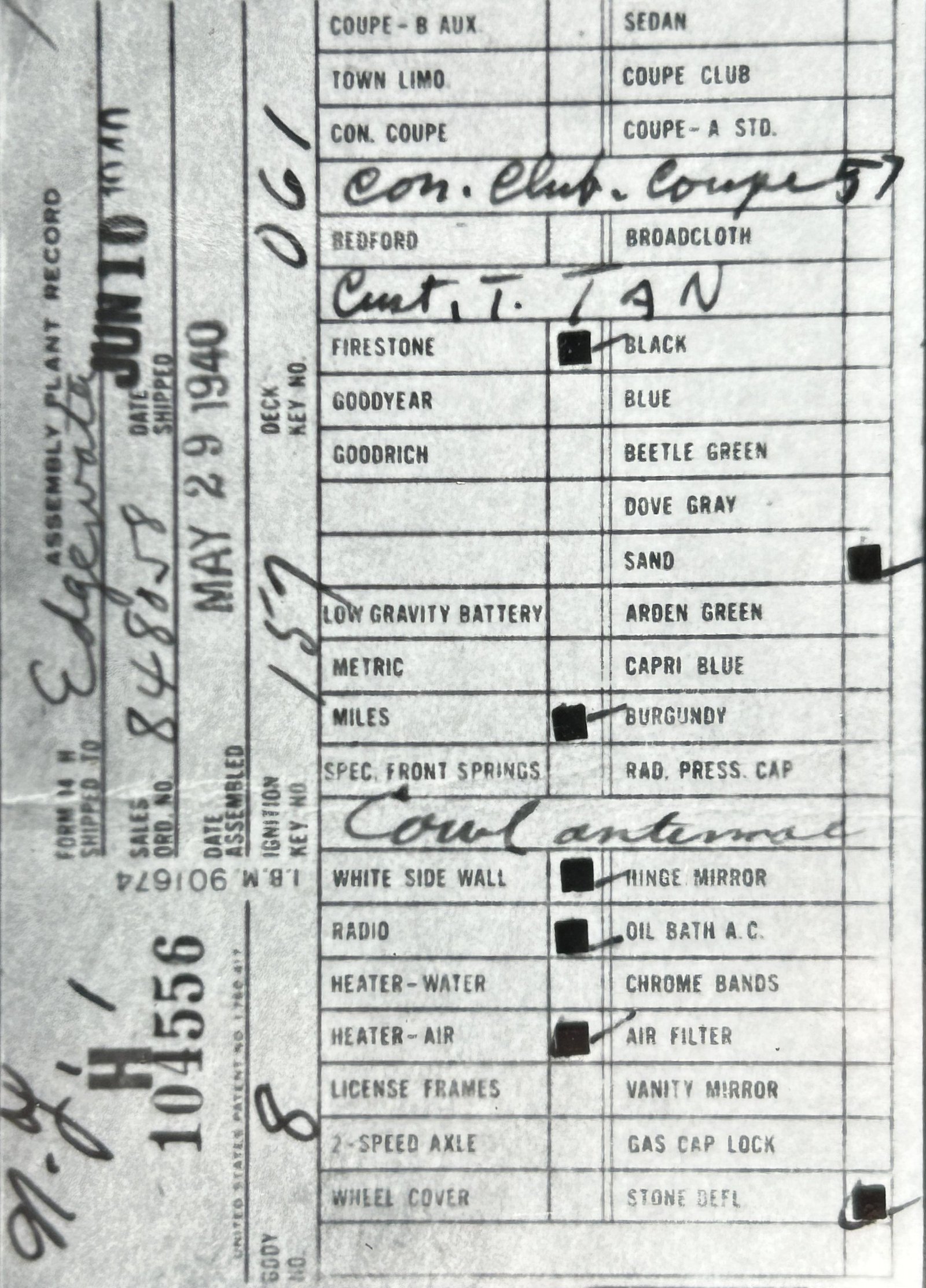 the car before and/or after these dates.