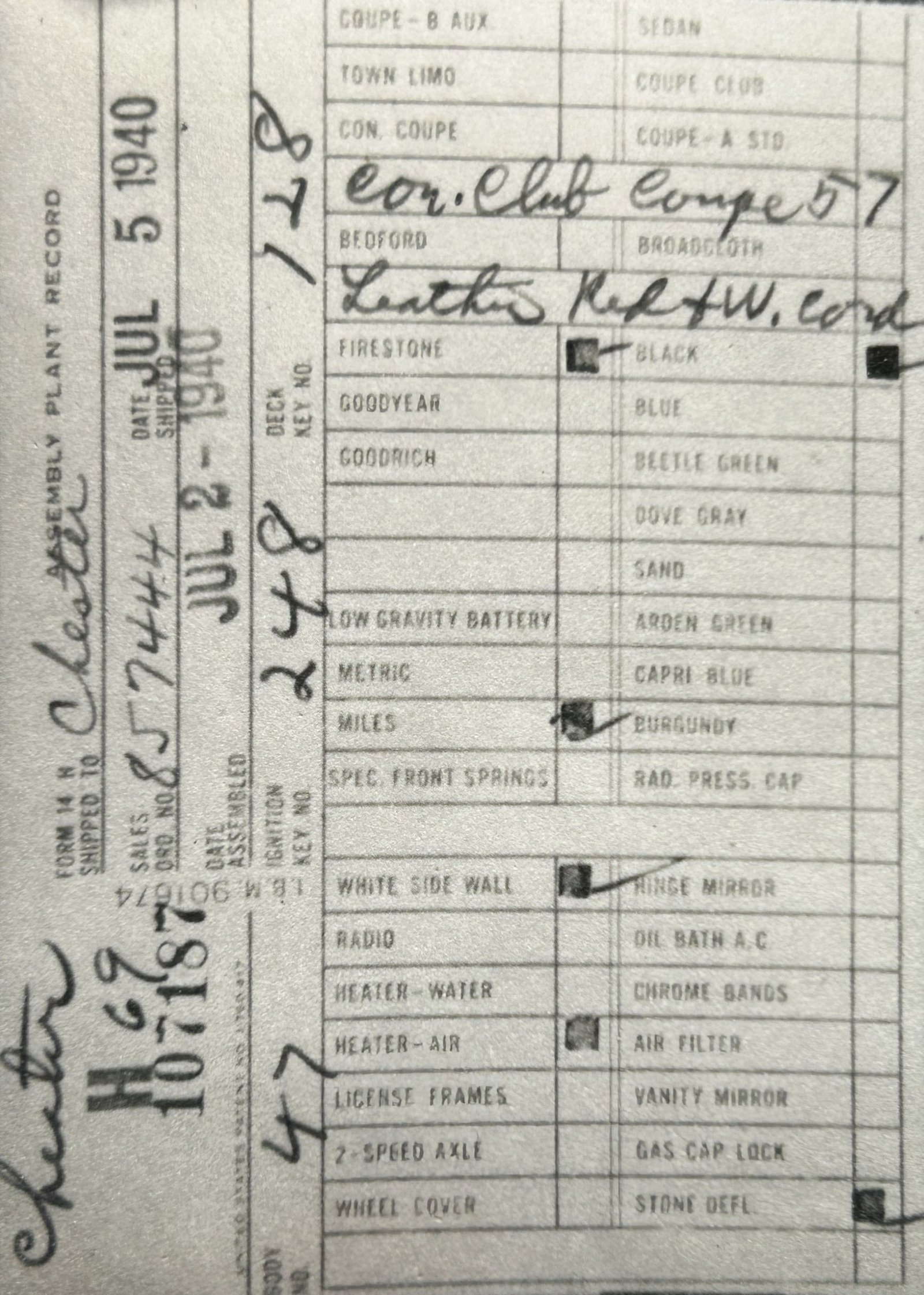 the car before and/or after these dates.