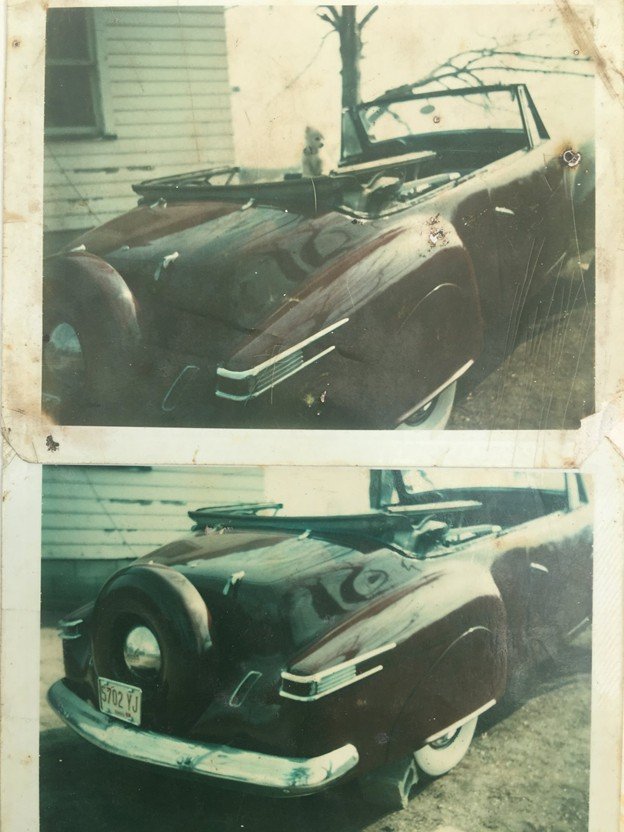 Wanted to share some pics of my grandfathers old 1940 or 1941 Lincoln convertible he owned in the late 70s. I noticed 2 sets of tail lights (40-41 and later 40s) and the rear fenders were molded from the looks(maybe?). Maybe caddy bumper? What all do you see? Doubt the car is still around but would be cool if it was and someone had pics, or even old pictures of the car.